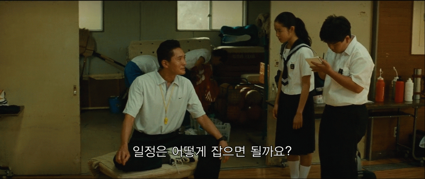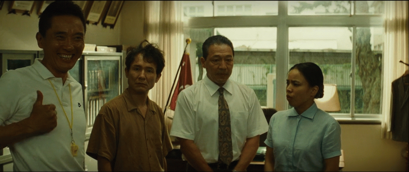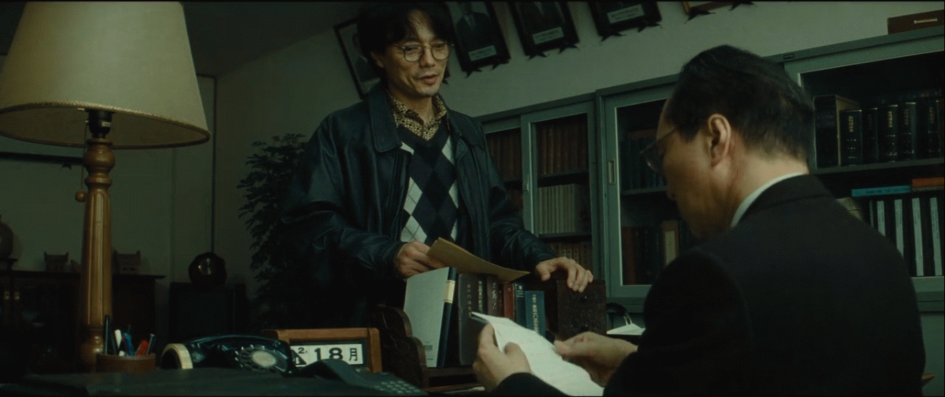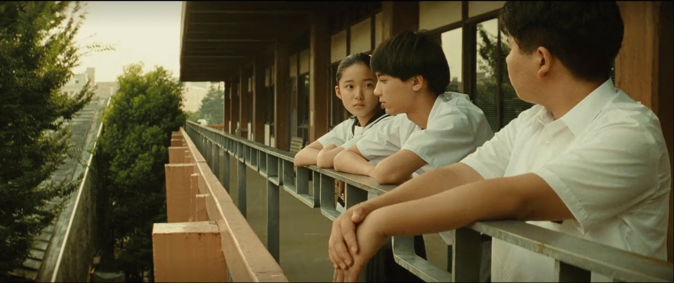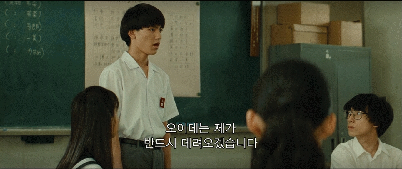 교장이 덮으려고 했던 고발장의 존재는 다른 교사들도 알게 된다. 선생 쿠스야마(파란옷)는 고발장의 존재를 숨긴 교장을 못마땅해 하고 믿지 못한다. 고발장을 찢은 담임 에미코도 마찬가지다. 에미코가 자신은 고발장을 받은 적이 없다고 눈물로 호소하지만, 쿠스야마와 학생주임 타가기는 그 말을 믿지 않는다.