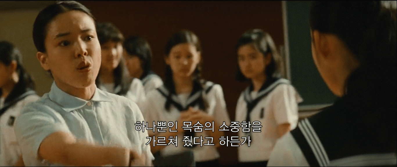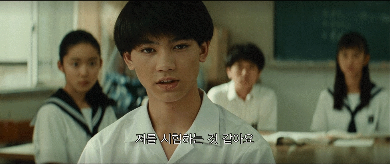 타쿠야의 팩폭에 눈물을 흘리는 료코. 말로는 타인을 괴롭히지 말자, 친구의 괴롭힘을 못본 척 하지 말자 해놓고 행동은 그렇게 하지 않은 건 좋은 게 아니다. 근데 제일 악질은 아니지. 제일 악질은 고작 여드름때문에 같은 학생을 구타하는 슌지 패거리가 제일 악질이지.