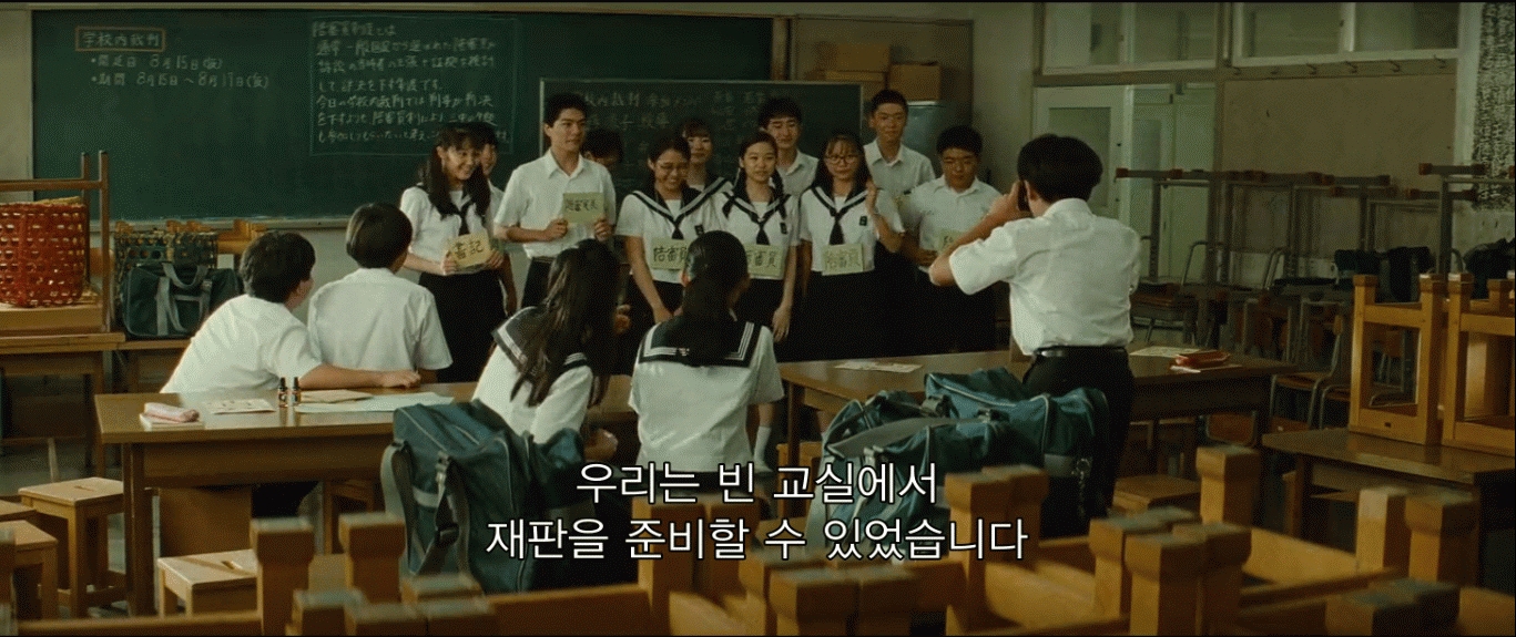키타오의 도움으로 빈 교실에서 재판을 준비하는 아이들. 변호사는 가즈히코와 켄이치, 검사는 료코, 료코의 조수 마리코와 코사카, 마지막으로 공석이었던 판사를 야스오가 맡으면서 재판에 필요한 인원들이 모두 채워진다.