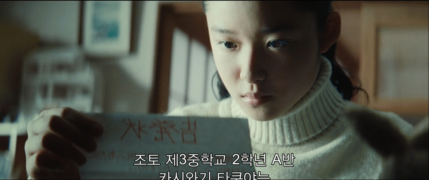 타쿠야와 동급생이던 미야케 쥬리(이하 쥬리)와 아사히 마츠코(이하 마츠코)는 어떤 편지를 우체통에 넣고 온다. 버스타고 멀리 와서, 누가 볼까 두리번 거리기까지 하면서.