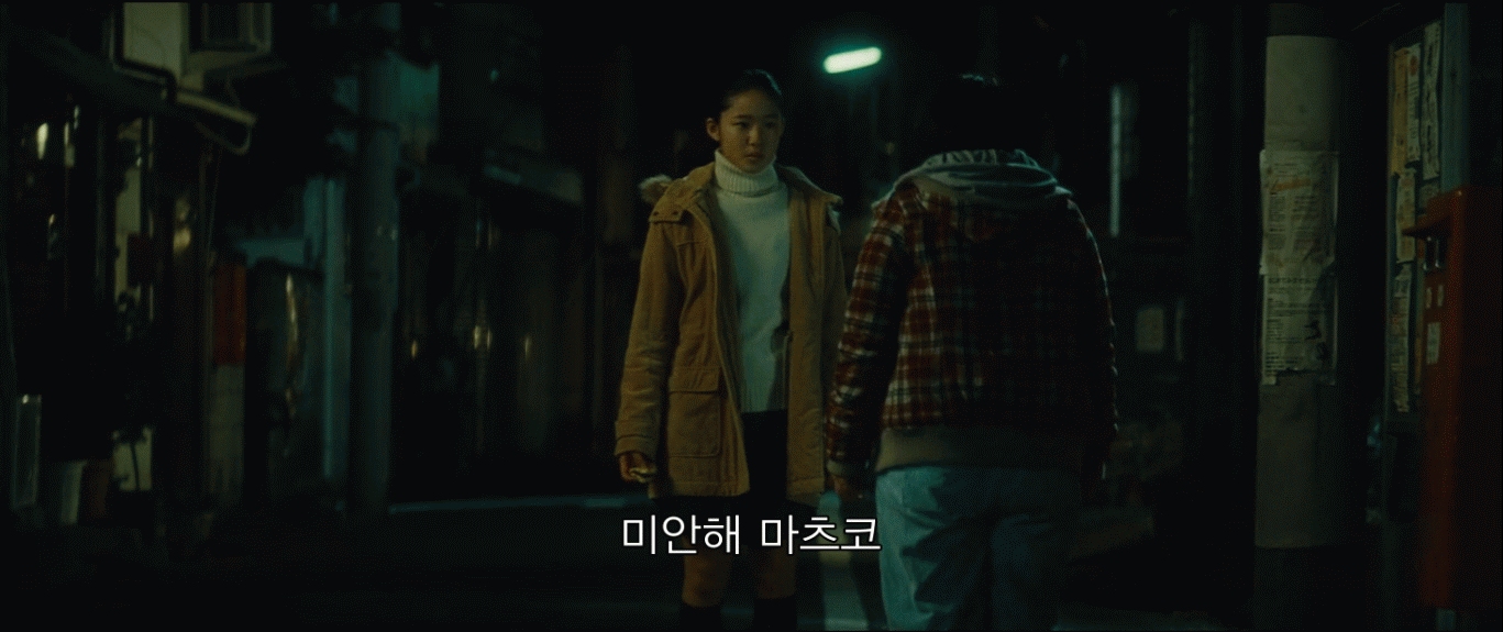 마츠코가 두고 간 악보를 전해주러 집으로 찾아온 료코. 료코는 마츠코가 배웅 나오는 길에 갑자기 미안하다는 말을 한다. 뭐가 미안하냐는 마츠코에 말에 아무 것도 아니라는 료코.