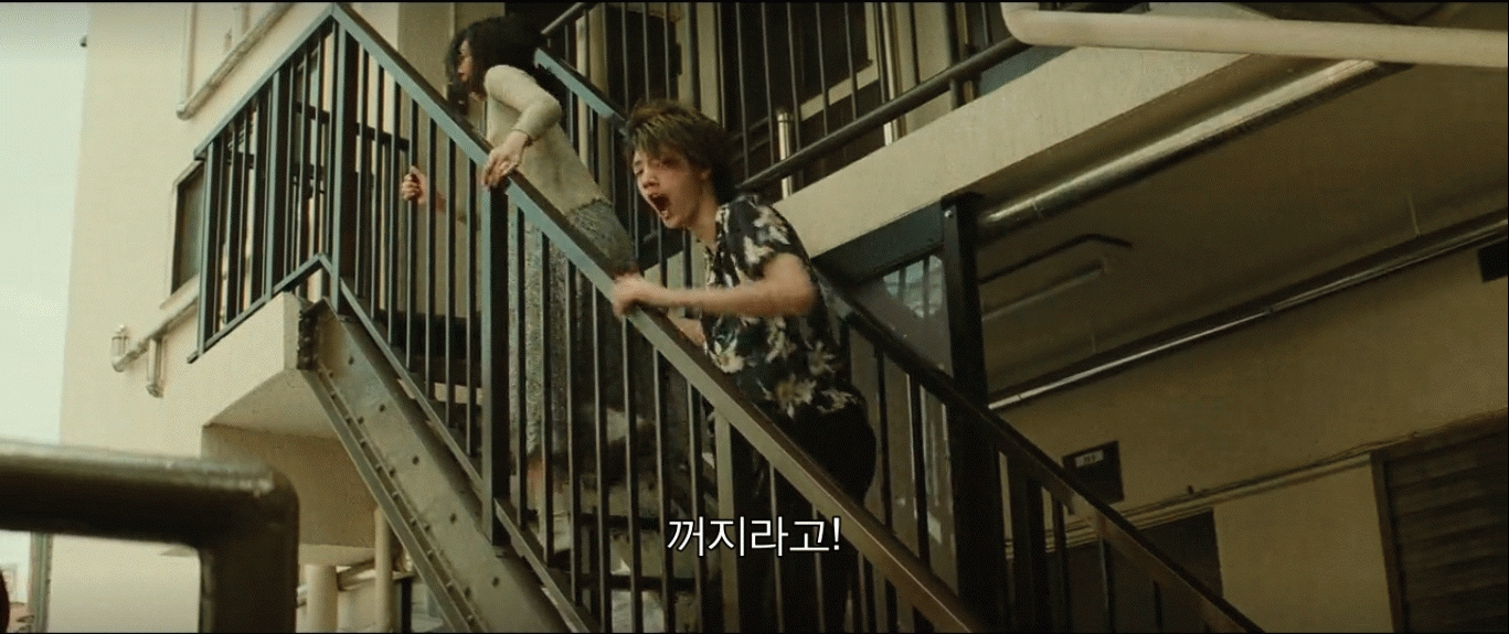 어느날 에미코는 옆집 부부가 싸우는 것을 보게 된다. 집 나가려는 남편을 아내가 붙잡자 남편이 가방으로 머리때리고 서로 육탄전을 벌인다. 아내에게 죽어버리란 말을 하고 집 밖으로 뛰쳐나가는 남편. 에미코는 아내에게 괜찮냐고 묻는데 아내는 에미코를 빤히 보더니 집으로 들어간다. 근데 아내 살짝 또라이인 듯. 집 들어갈 때 기어간다. 아니 무슨 벌레도 아니고 기어가냐.