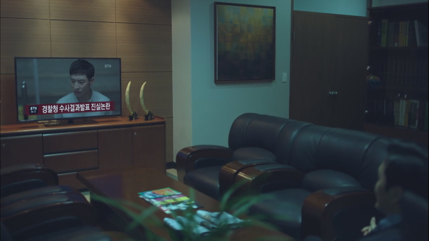김범주는 뉴스에 자기가 나올 줄 알고 기대했는데 박해영이 나와 당황하고 있다.