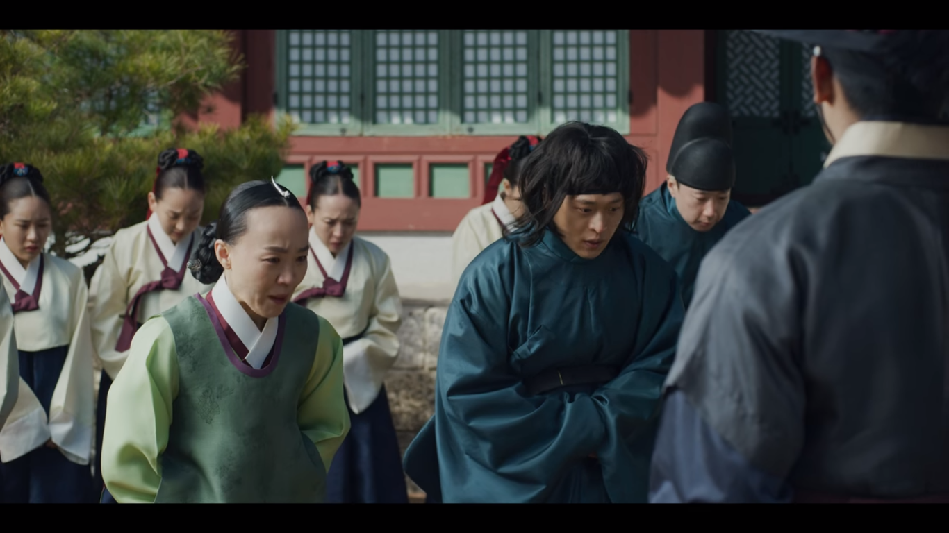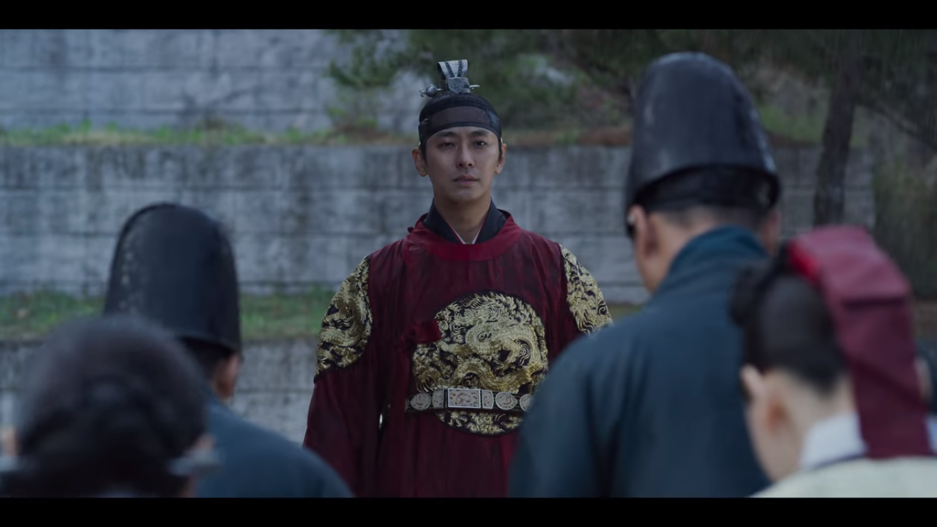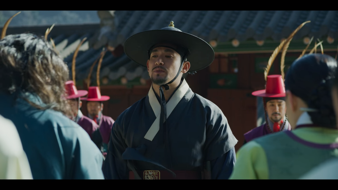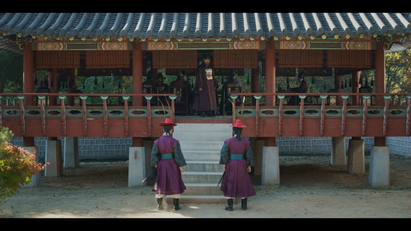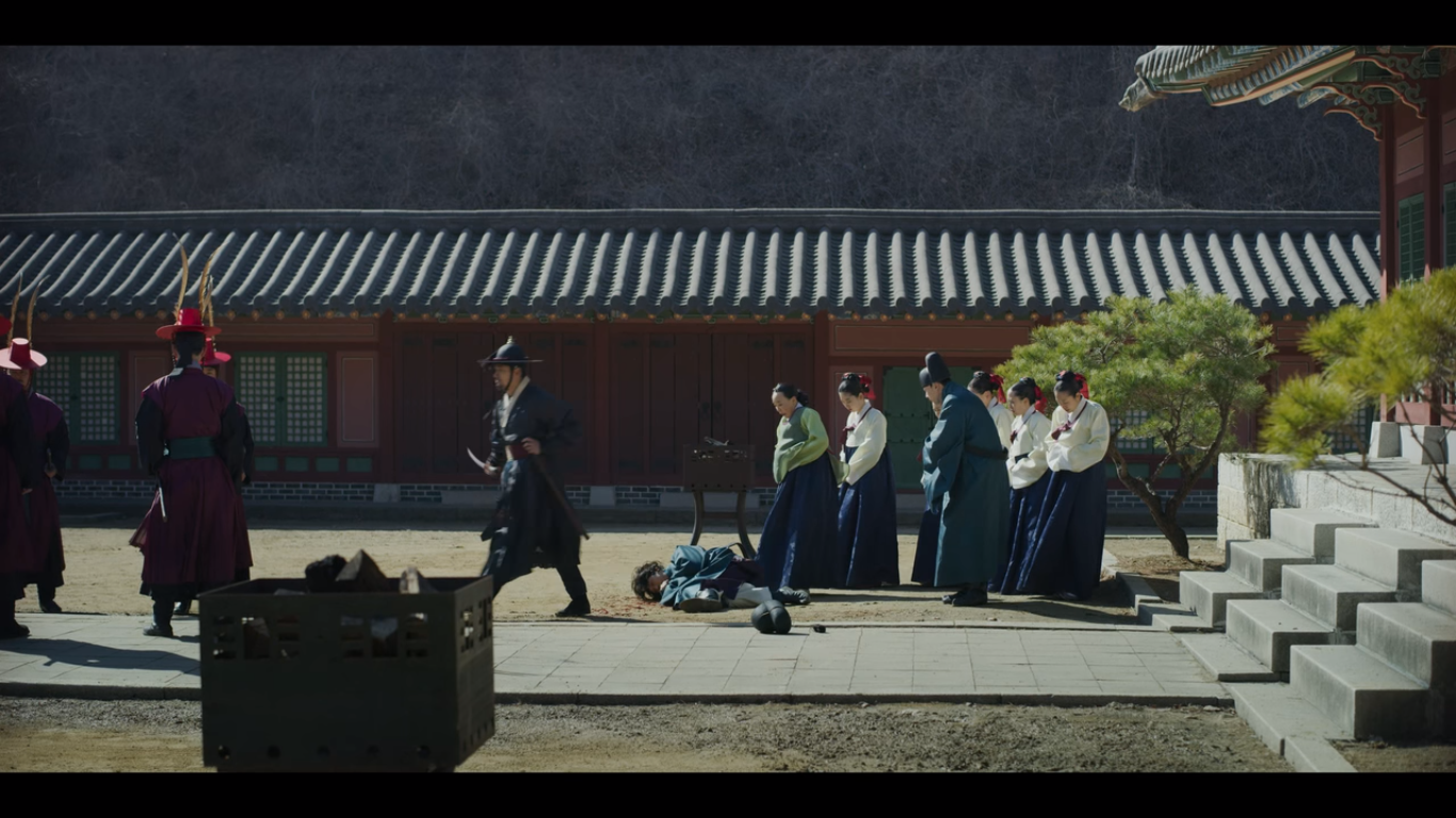 밤사이 한양 곳곳에 왕이 죽었다는 괘서가 붙는다. 금군별장 조범일은 글을 붙인 자, 쓴 자, 쓰라고 지시한 자를 잡아들여 삼족을 멸하겠다고 한다. 이 글이 붙도록 손 놓고 있었던 자들 포함해서 말이다. 괘서가 붙은 것을 막지 못한 포졸 두 명은 바로 처결당했다. 금군별장 주제에 힘이 너무 강한거 아닌가 싶은 분들은 얘가 뭘 믿고 이렇게 까부는지 밑에서 보면 알게 된다.