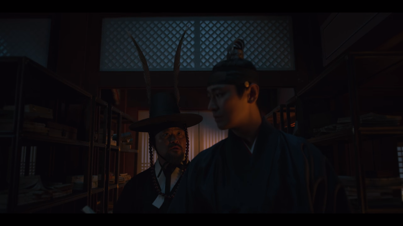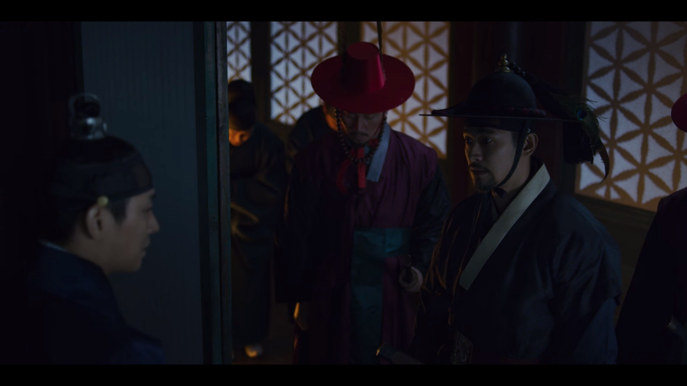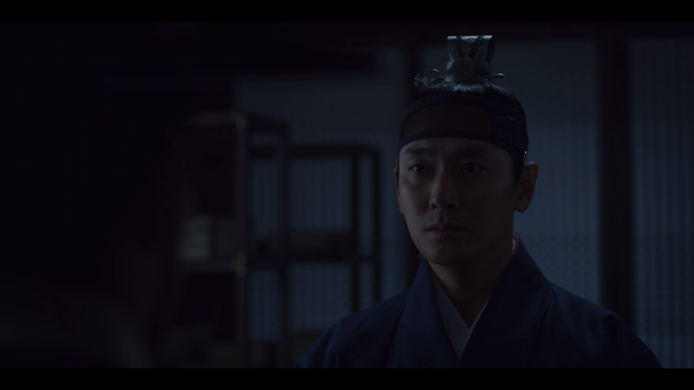 문을 살짝 열고 바깥을 살피는데 누군가 문을 확 열어재낀다. 조범일이다. 이창은 자신이 본 괴물에 대해 말하지만 조범일은 석고대죄하느라 몸이 허해져서 잘못 본 것 같다고 얘기한다. 그러자 이창은 아바마마를 찾았냐고 묻고, 조범일은 왕이 침전에 누워있다고 답한다.