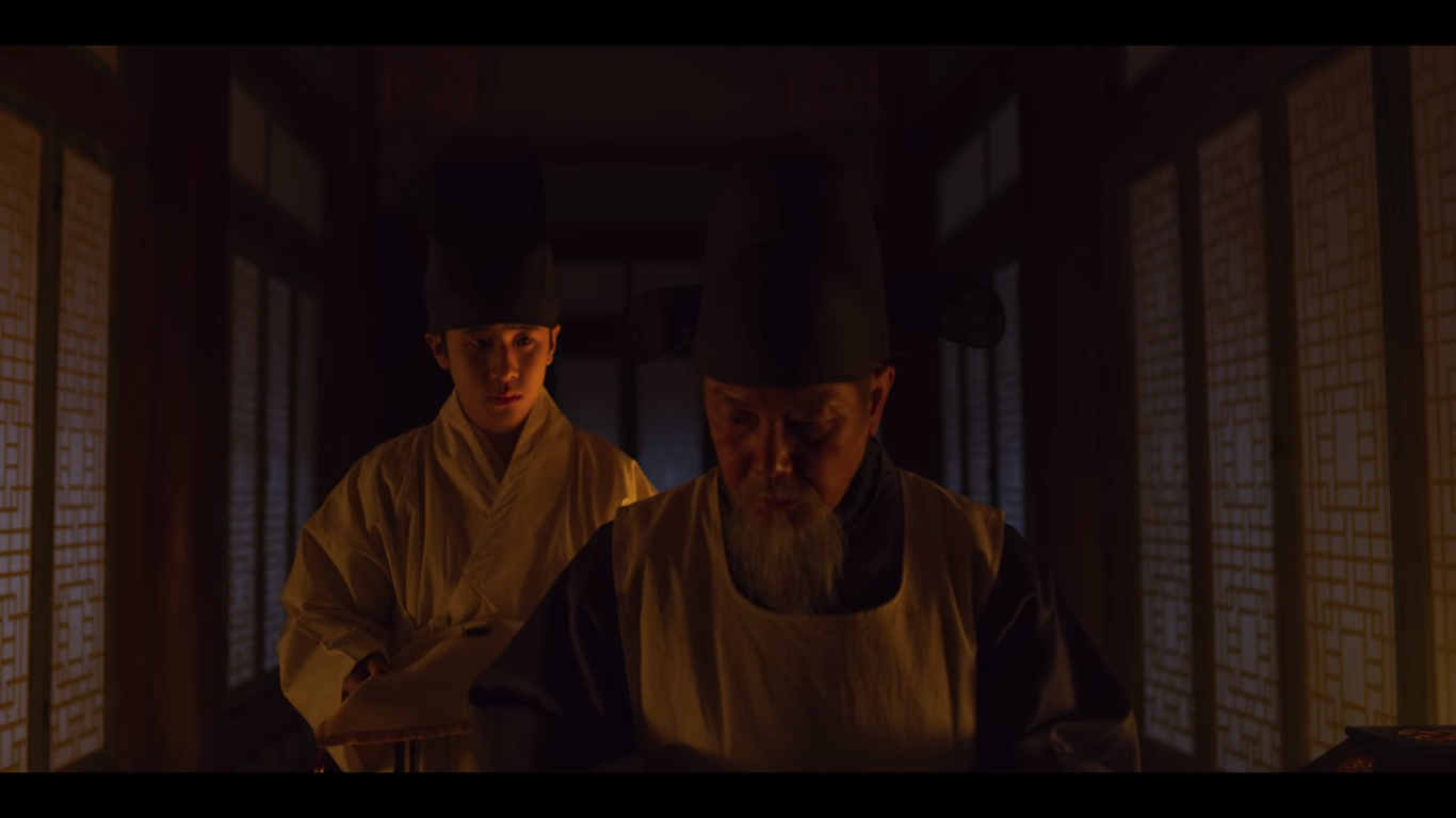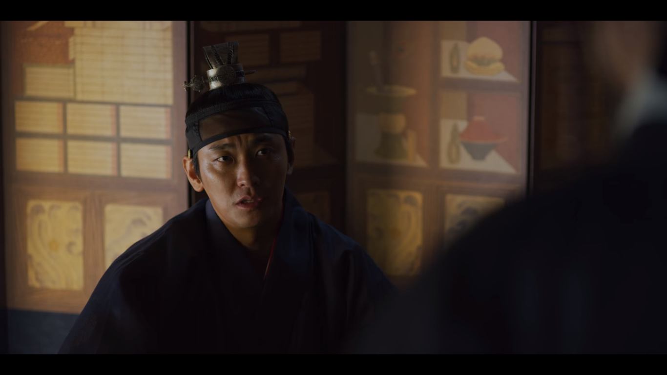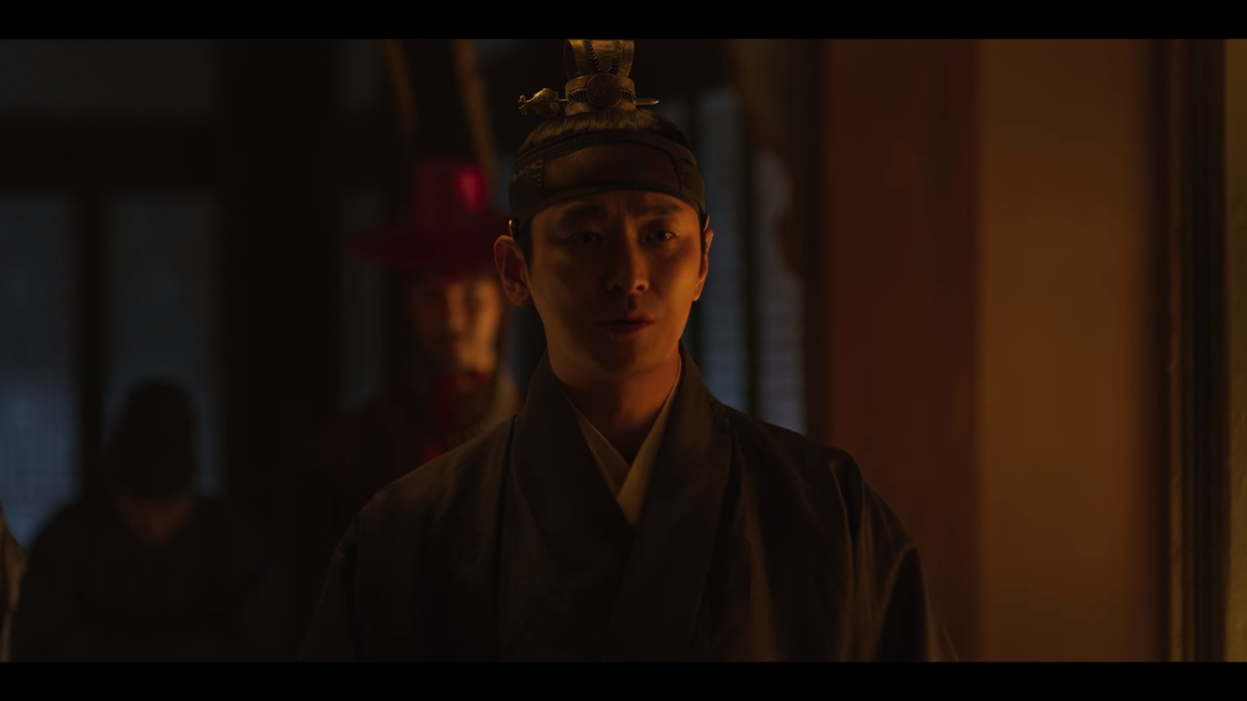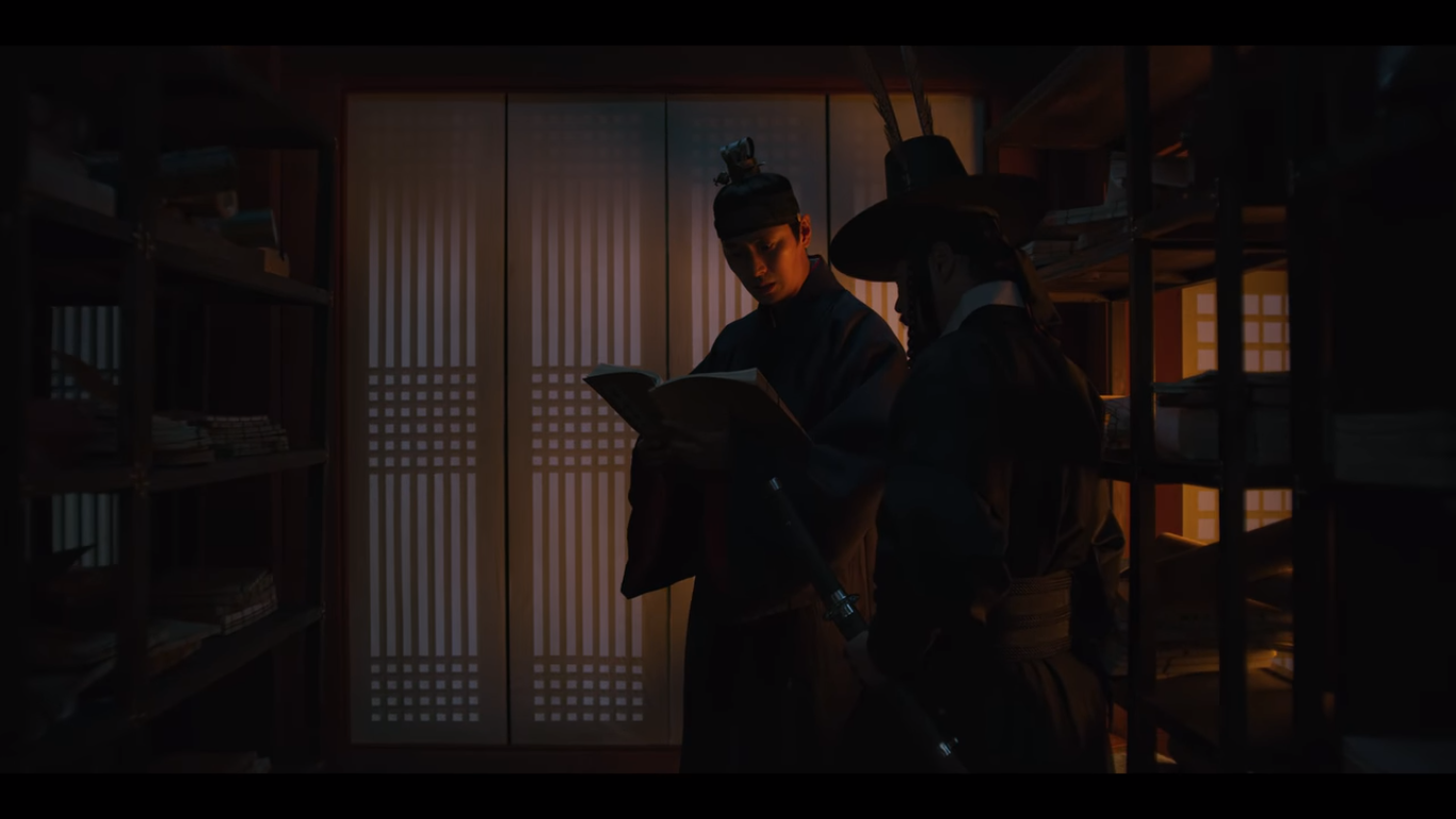 문을 살짝 열고 바깥을 살피는데 누군가 문을 확 열어재낀다. 조범일이다. 이창은 자신이 본 괴물에 대해 말하지만 조범일은 석고대죄하느라 몸이 허해져서 잘못 본 것 같다고 얘기한다. 그러자 이창은 아바마마를 찾았냐고 묻고, 조범일은 왕이 침전에 누워있다고 답한다.