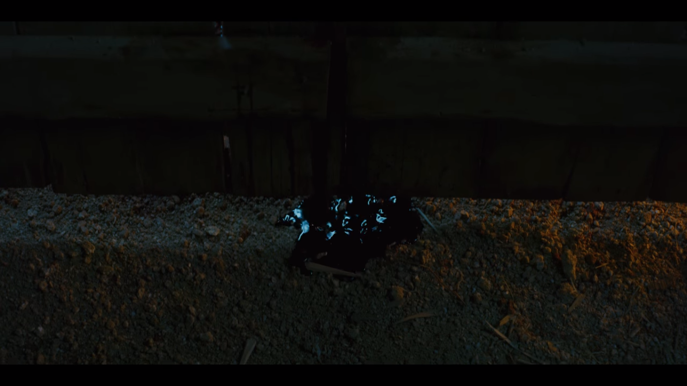 서비와 영신은 창고를 나가려다 문에서 피가 흐르는 것을 보고 멈칫한다.