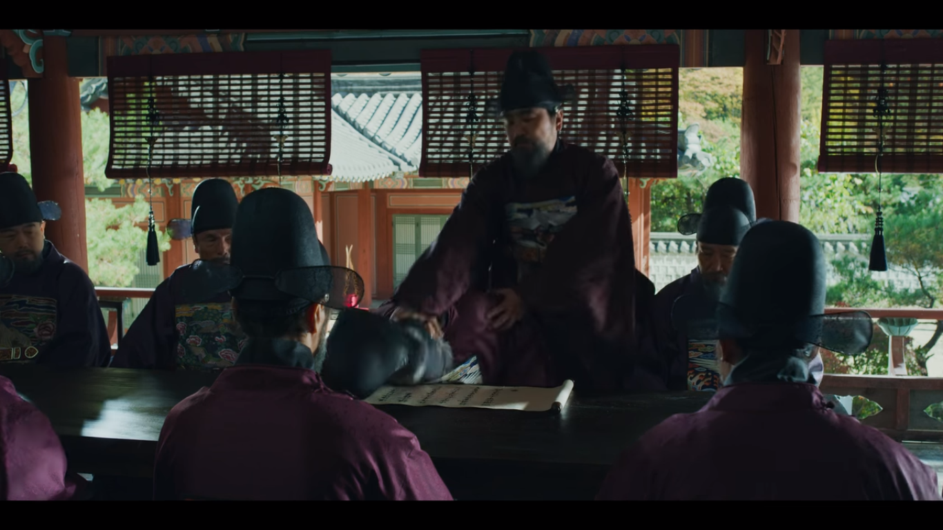한편 한양에서는 어떤 서신때문에 조정 대신들이 모여있다. 서신의 내용은 지금의 왕을 폐위시키고 세자를 왕으로 추대해 새로운 세상을 열겠다는 내용이다. 우의정과 좌의정은 이는 역모의 증거이니 세자를 의금부로 압송해 조사해야한다고 말한다. 이 서신의 출처를 물으니 압송된 유생 중 1명의 집에 이 서신이 있다는 고발자가 있었다고 한다. 대제학은 압송된 유생 중에 역모를 시인한 사람은 아무도 없는데 고발자 한 사람의 말만 믿고 역모로 몰아가는 것은 이 나라의 근간인 유림을 무시하는 처사라고 얘기한다.