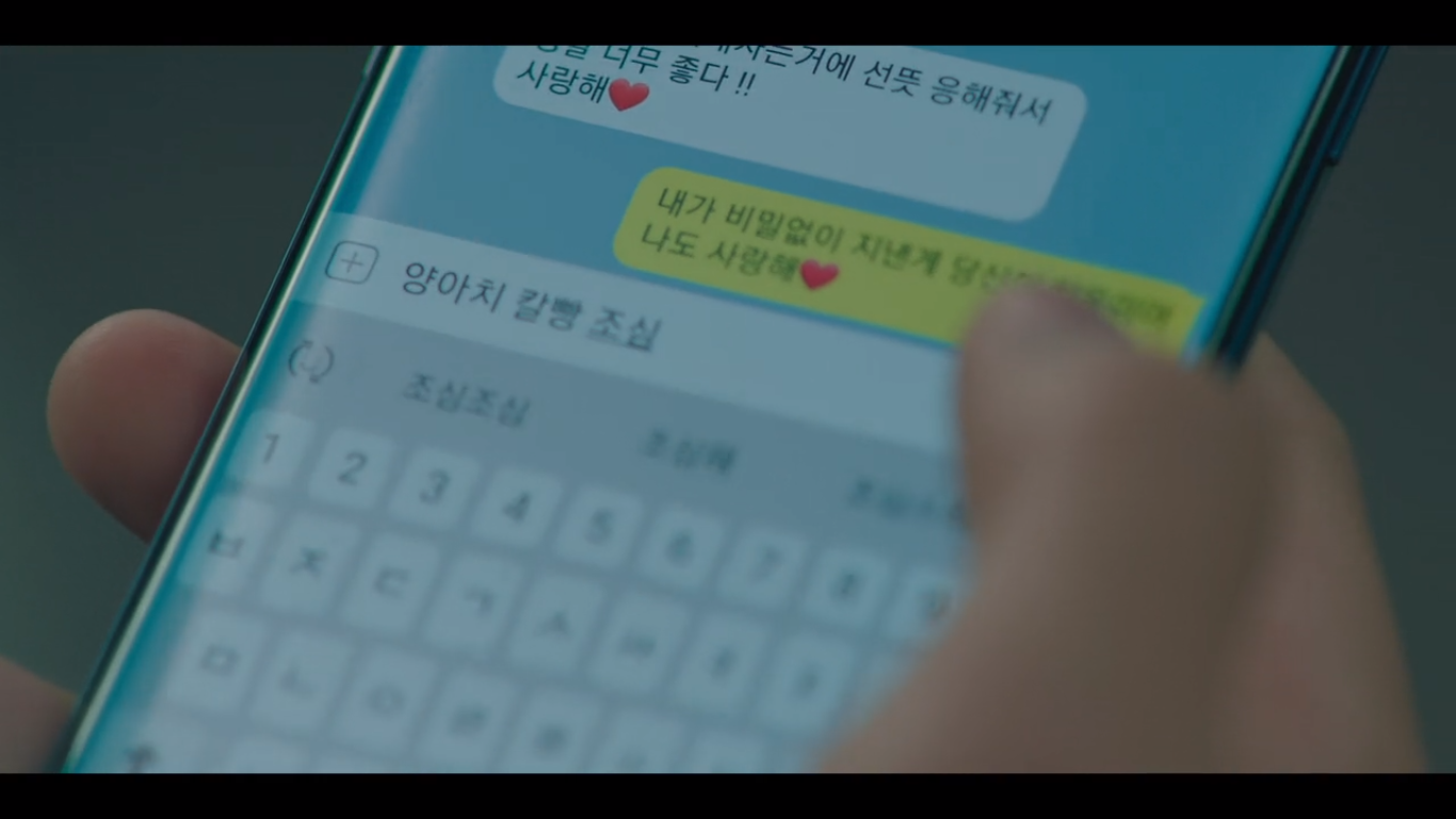고민고민하다가 정금자에게 '양아치 칼빵 조심'이라고 톡을 보낸다. 그 위에 서로 사랑한다고 하트 날리는거 너무 짠하다. 정금자에게 톡을 보냈지만 이미 양아치와 마주친 정금자.