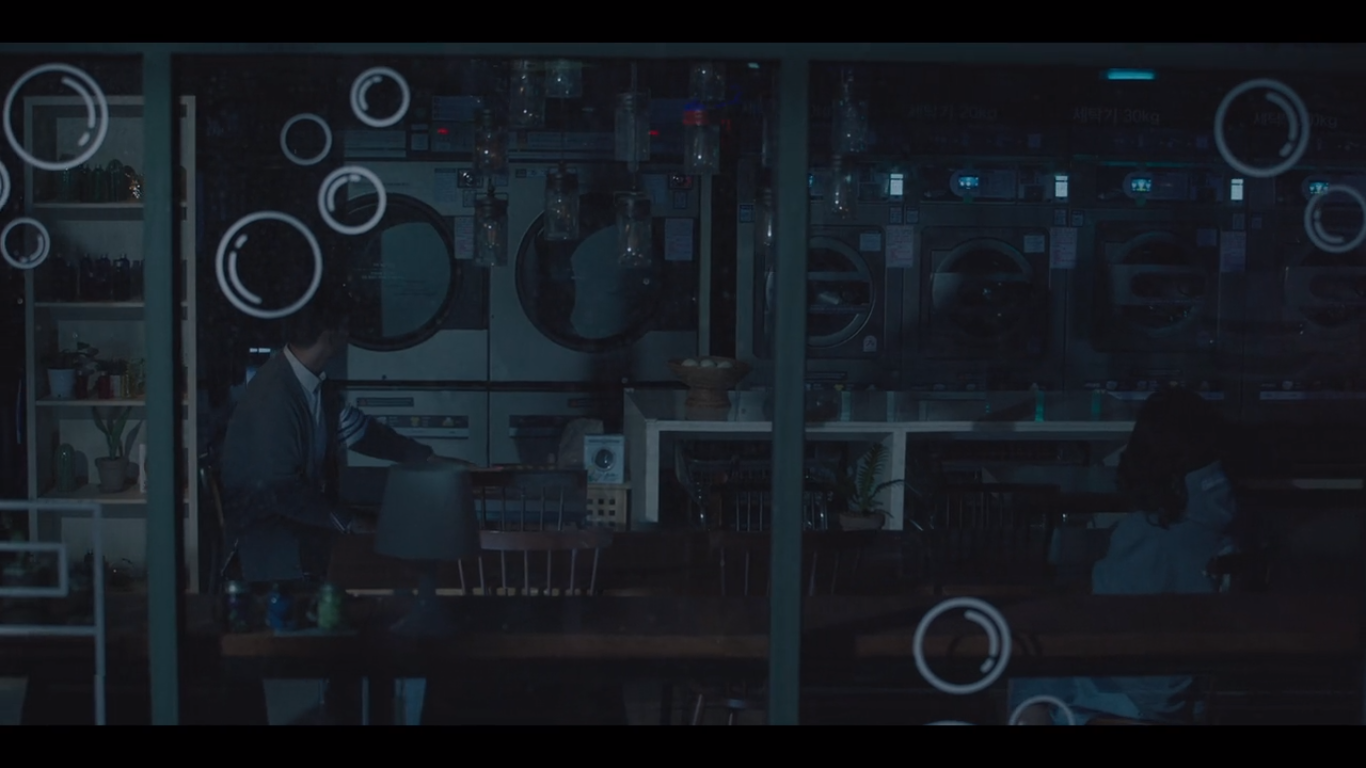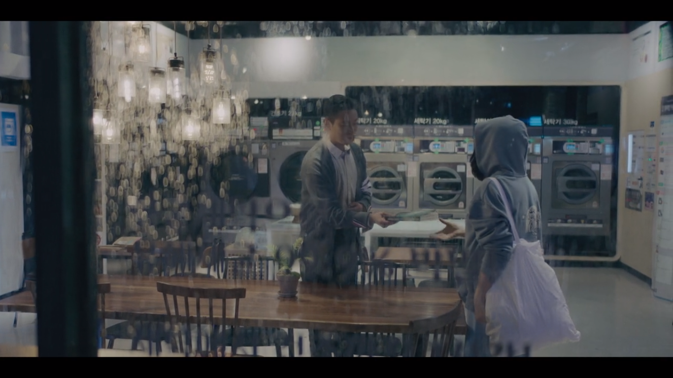 그녀가 빨래방을 나가려는 찰나 다시 불이 들어오고, 윤희재는 그녀에게 우산을 권하지만 그녀는 듣지 못하고 나간다. 그런데 그녀가 책을 두고 나갔다. 도나토 카리시 작가의 '안개 속 소녀'라는 책이다. 무려 영어 원서! 윤희재가 그 책을 보고 피식하고 있는데 그녀가 들어와 책을 찾는다. 윤희재는 다시 자신의 우산을 권하는데 그녀는 "뭐, 저는 이미 다 끝난 것 같네요. 그쪽이라도 뽀송하시죠."라며 쿨하게 나간다.