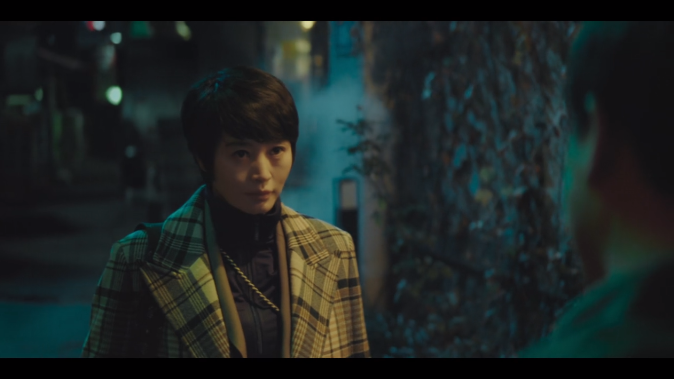 양아치가 칼을 휘두르자 호신용 스프레이를 뿌리는 정금자. 그러나 도망가기에는 역부족이다.