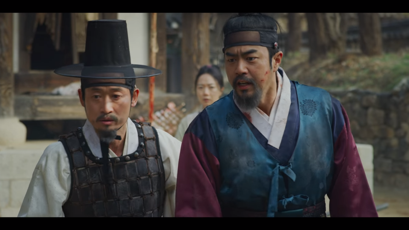 그 안현대감이 바로 왼쪽 사람이다. 와 카리스마 철철. 예전부터 허준호 아저씨는 존재감이 엄청난 듯. 안현은 삼년상을 치르고 있는데 봉화가 올라온 것을 보게 된다. 그런데 대제학의 계획은 처음부터 틀어지고 있었다. 대제학이 안현에게 보내려던 서신이 조학주 손에 들어갔기 때문이다.