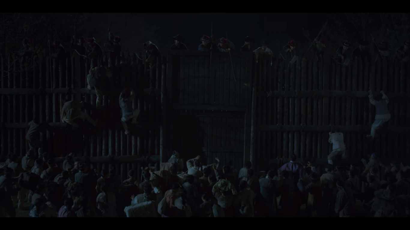 이창과 무영, 살아남은 생존자들이 군영으로 몰려든다. 하지만 군영의 문은 닫혀있었고 아무 대답이 들리지 않는다. 이창과 몇몇 사람들이 목책을 오르자 그제서야 이방이 목책에서 떨어지라고 소리친다. 이방은 군졸들에게 사람들을 쫓아내라고 하고, 그 과정에서 이창은 활에 맞을 뻔했다. 무영은 이창이 세자저하이니 문을 열라고 하지만, 이방은 헛소리하지 말라며 벽을 넘는 자들은 국법으로 다스리겠다고 한다. 군졸들은 목책에 오르는 사람들을 떨어뜨리고 활을 쏜다.