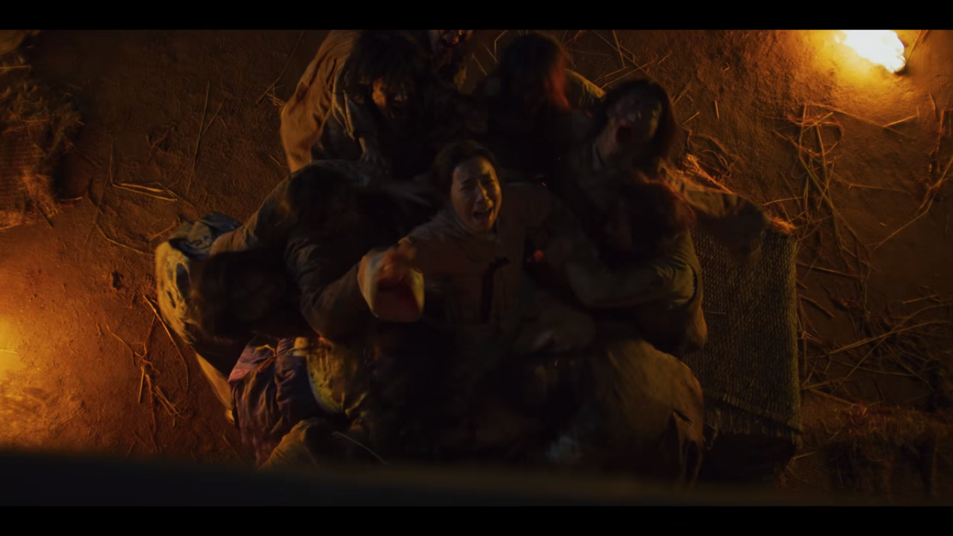 그때 괴물들이 군영까지 들이닥치고 사람들은 혼비백산이 되어 도망친다. 이창과 무영은 절벽 밑 물로 뛰어든다. 괴물들은 그대로 물에 가라앉는다. 이래서 괴물들이 물을 무서워 했구만. 수영을 못해서. 그나마 밸런스패치했네. 근데 나도 저기 있었으면 수영 못해서 익사했을 듯.