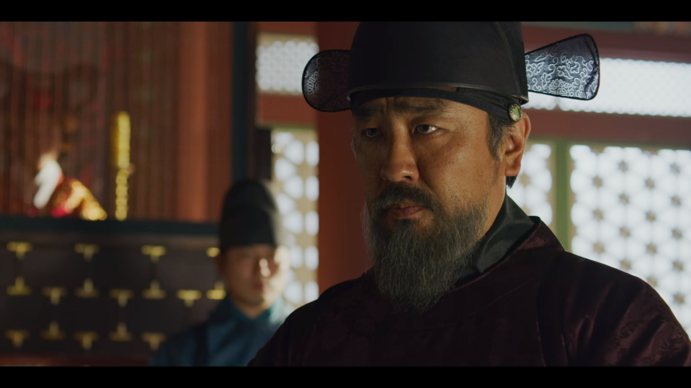 궁에선 조학주가 계비를 내세워 조정을 장악한다. "대신들은 중전마마의 교지를 받드시오. '하늘이 이 나라에 은덕을 내리지 않아 창졸간에 주상께서 역병으로 쓰러지신 뒤 정신이 혼미하시고 다음 보위를 이을 세자는 부왕의 자리를 탐하는 용서받지 못할 대역죄를 저질렀다. 종실에 이와 같은 혼란이 있어 어좌가 주인을 잃었건만 나라에는 끔찍한 역병이 돌아 백성들이 고통을 받고 있으니 이 어찌 참담하지 아니한가. 이에 어좌를 한시도 비울 수 없다는 시임, 원임 대신들의 간곡한 충정을 거듭 뿌리칠 수가 없어 황망한 심정을 억제하고 수렴청정에 나서겠다.'" 수렴청정은 나이 어린 세자가 임금이 되었을 때 어머니나 할머니가 대신 국왕을 대신해 나랏일을 결정하는 정치 형태다. 간단히 말하면 중전이 왕 대신 정치하겠다는 뜻이다. "수렴청정을 받아들인 금일 중전마마의 첫 전교를 내린다. '경상 땅에 창궐한 끔찍한 역병을 다스리기 위해 훈련도감, 어영청, 수어청으로 구성된 중앙군을 급파해 혼란한 민정을 다스릴 것이다.'"