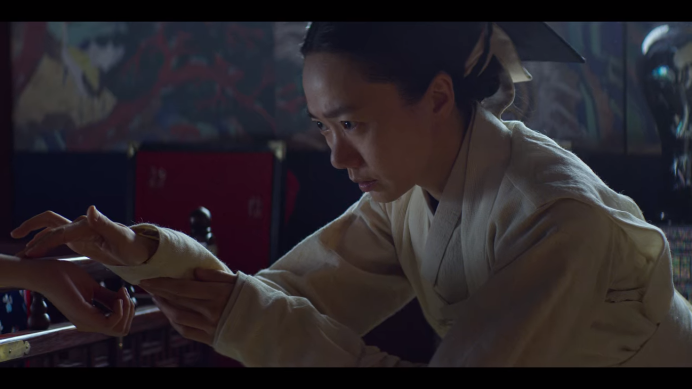 "강화도에 유배됐던 노성군의 후손이 살아있다. 방계 중의 방계이나 저 천한 것보단 낫겠지. 저 천한 것은 오늘 밤 죽일 것이다. 뿐만 아니라 이 일을 아는 모든 사람들, 중궁전 상궁들, 내금위들 그리고 이 의녀까지 다 죽일 것이다. 그리고 넌 아기를 잃은 슬픈 대비가 되어 서궁에 유폐되어 평생을 보내게 될 것이다."