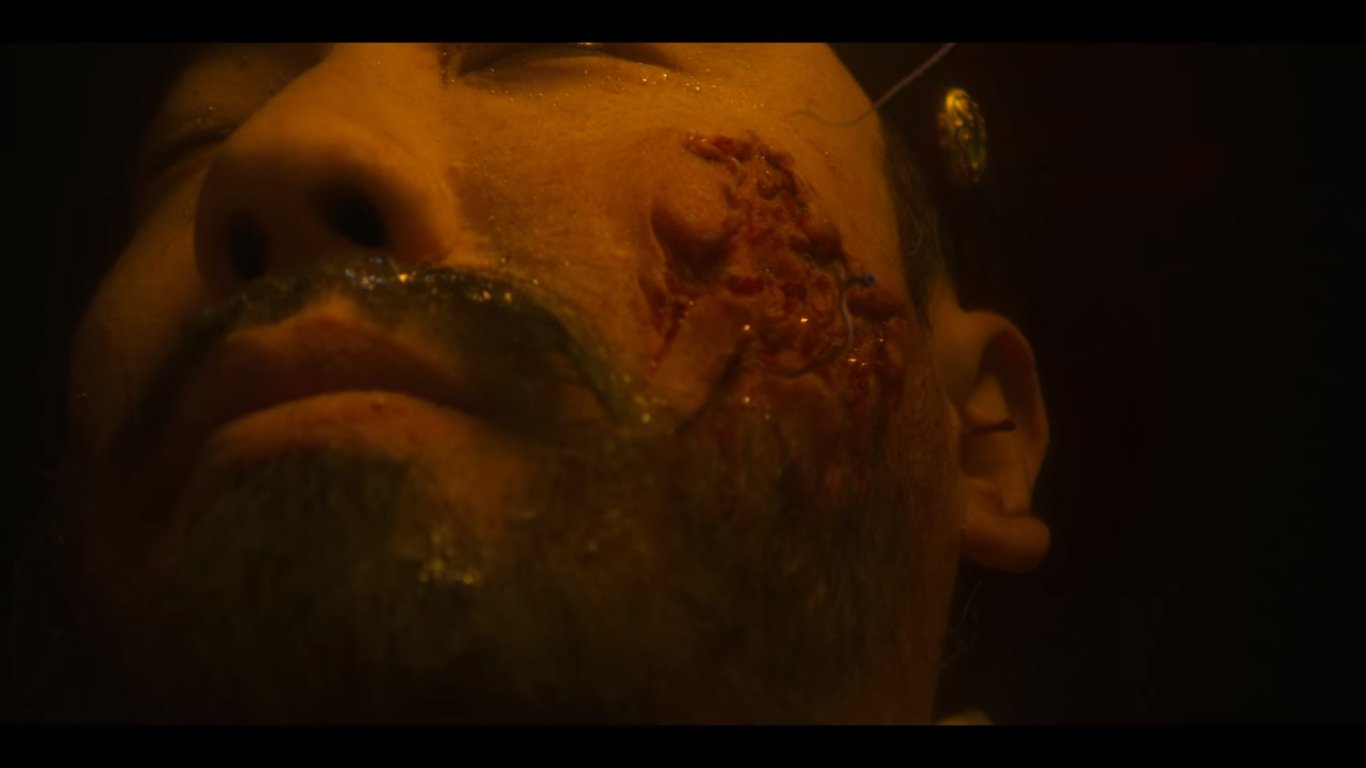 혹시 물이 도움이 될까 조학주를 욕조에 담그는 서비와 조범팔. 물에 들어가자 조학주가 컥컥거리며 몸부림을 친다. 서비가 조학주의 몸을 눌러 얼굴까지 물에 담그자 조학주의 몸에서 벌레들이 빠져나온다. 아으 징그러. 킹덤 시즌2 2화 엔딩에서 괴물이 된 안현 눈에 벌레가 꿈틀거리는 장면이 있었는데 이것들이 다 힌트였다.