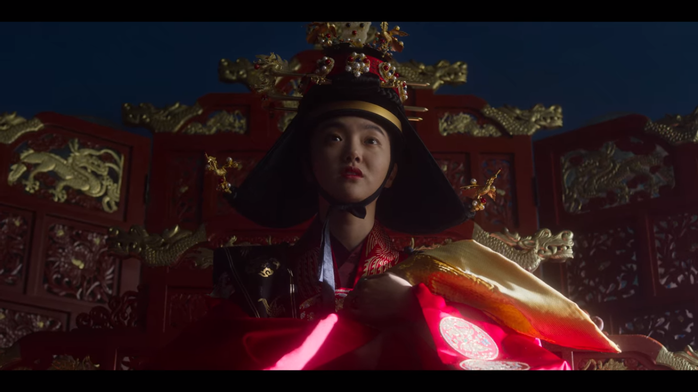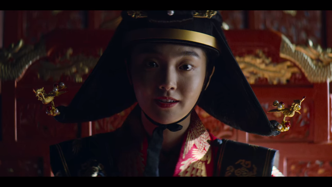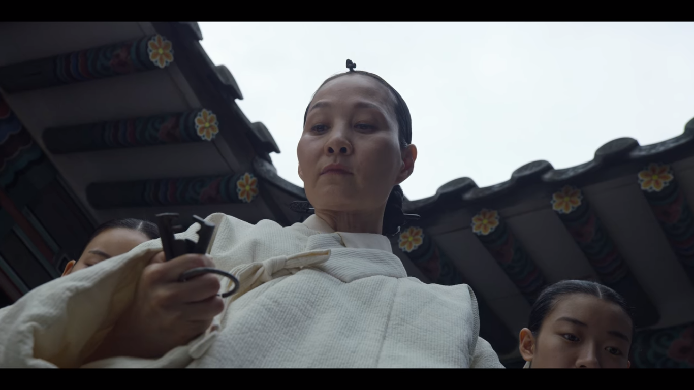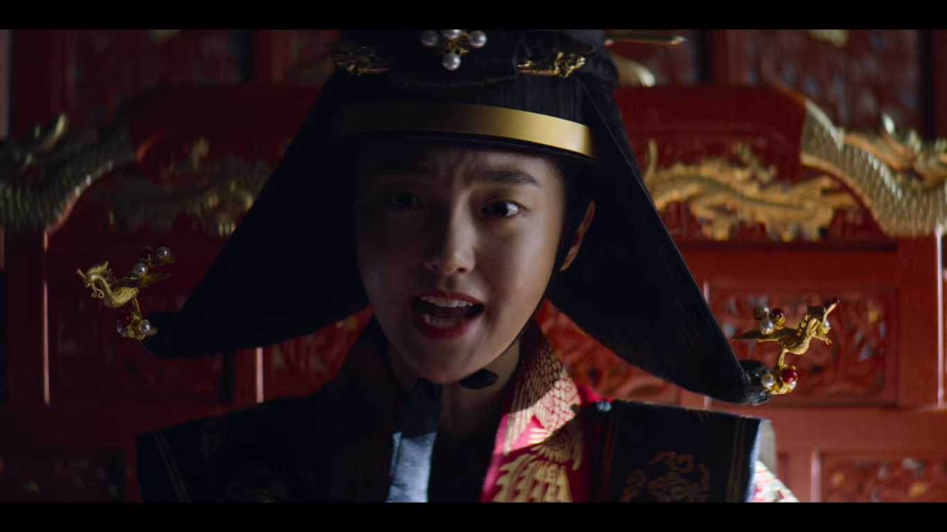 이창 일행이 정전으로 가자 계비가 무영의 아기를 안고 기다리고 있었다. 계비가 정전에 앉아있는 장면의 색감이 굉장히 화려하고 예쁘다. 계비가 입고 있는 옷의 영향이 큰 것 같다. 저 옷은 왕비의 대례복인 적의다. 적의는 최고의 예복으로 국가의 가장 큰 행사인 책봉식이나 가례식, 종묘사직제사, 조회 등에서 착용하였다고 한다. 연출 정말 잘한 듯.