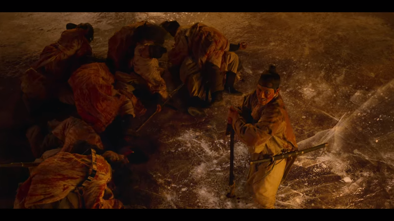 환자들이 들이닥치자 못에 총을 쏘는 군졸들. 아니 근데 좀 미리 쏴놨으면 되는 거 아니었나? 두껍게 얼어서 한번에 깨지지도 않더만.