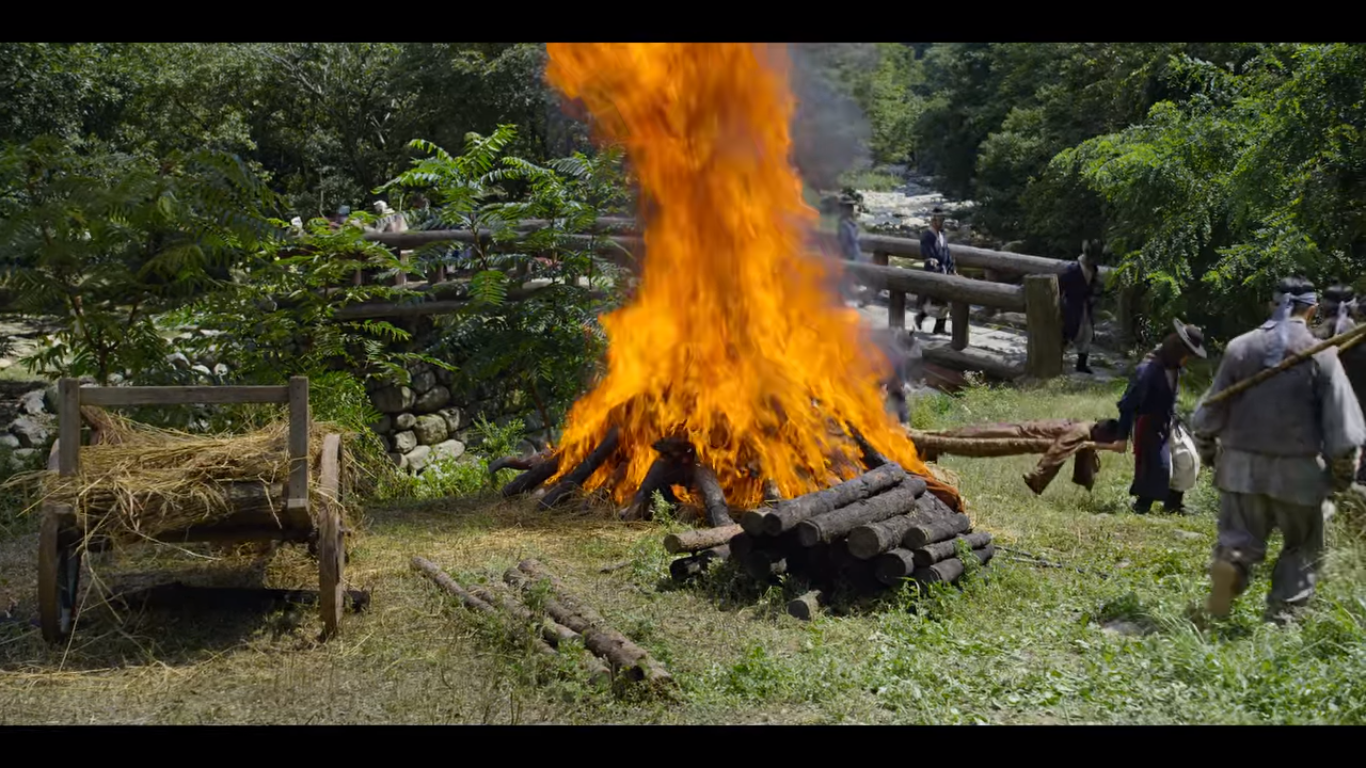 3개월 후 상주읍성. 봄이 되어 역병환자들을 처리하는 사람들. 상주 사람들이 무사히 버텨냈다.