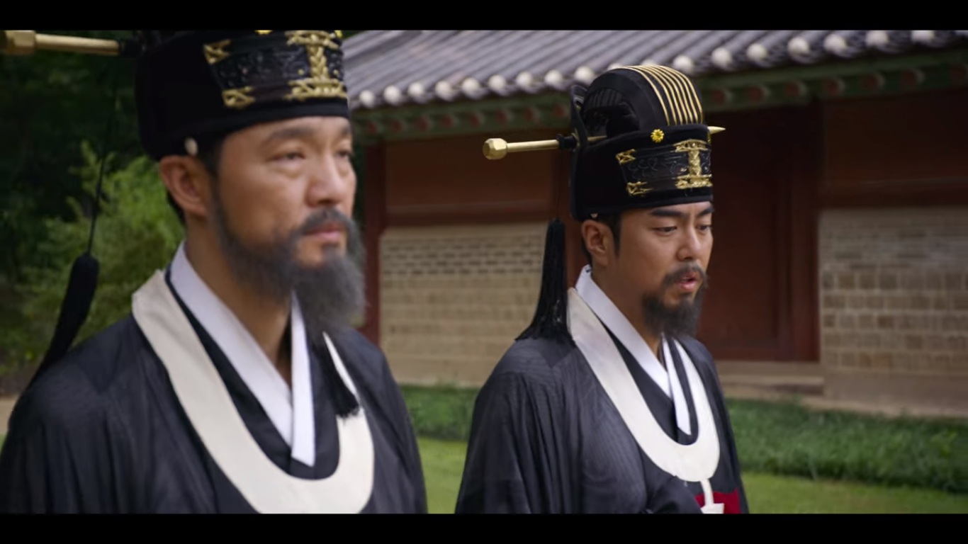 궐 밖에서는 궐 문이 모두 닫혀 안에서 무슨 일이 벌어지고 있는지 알 수가 없다. 오른쪽 유생 기억하려나 모르겠는데 시즌1 1화에 추국을 당했던 유생 중 한명이다. 해원 조씨가 역적이라고 했던 유생. 아직까지 무사히 살아있었다.