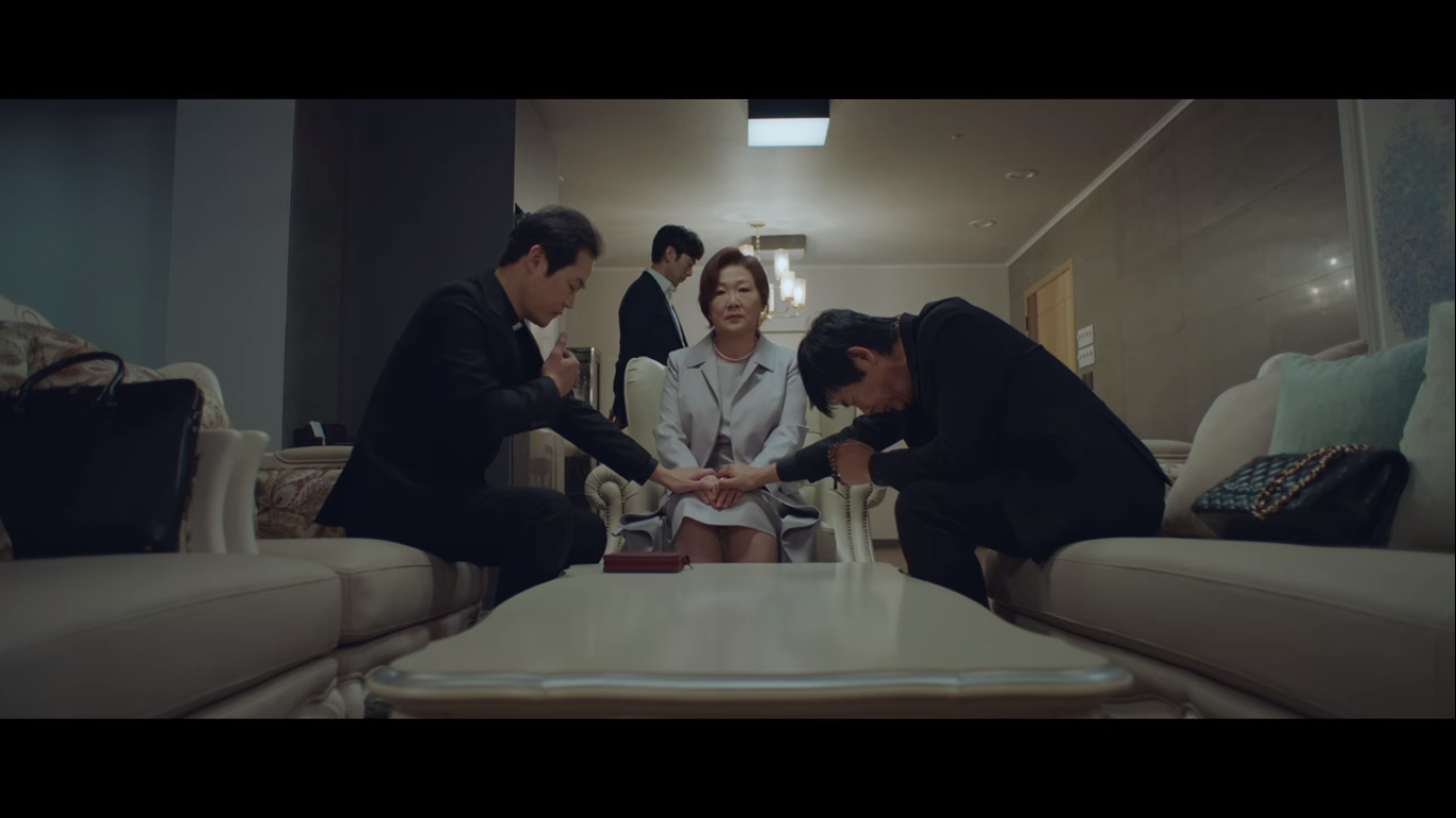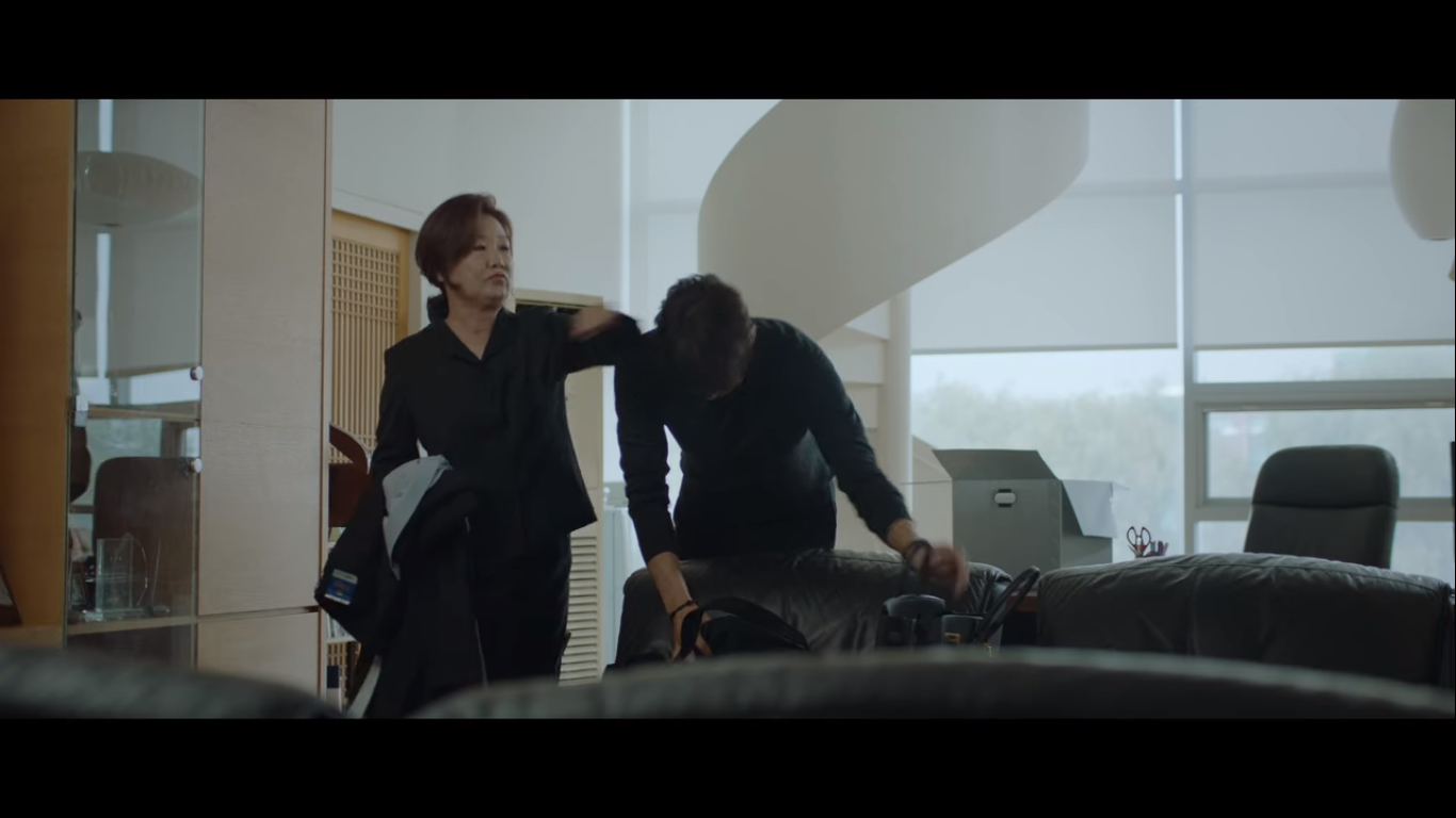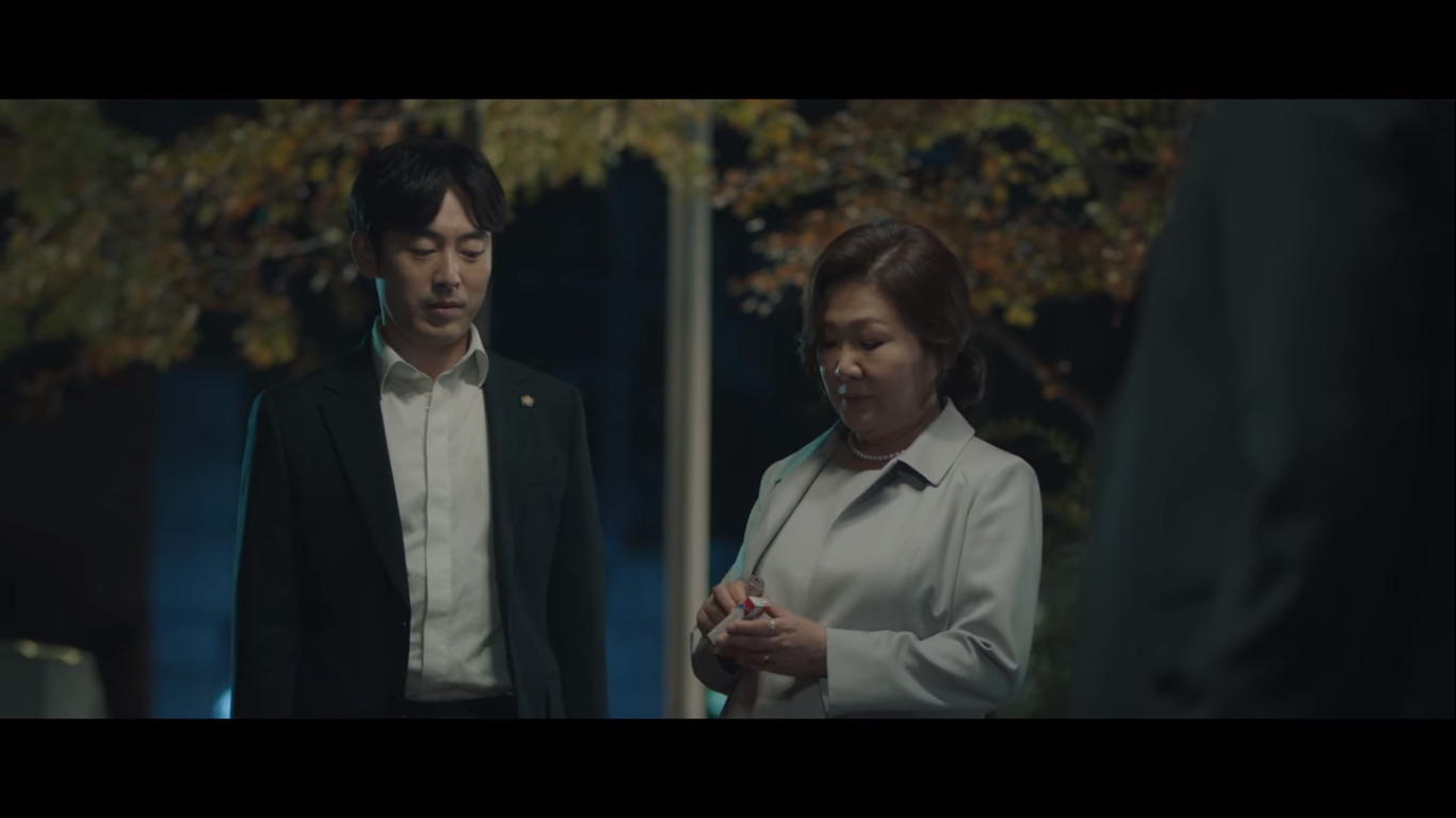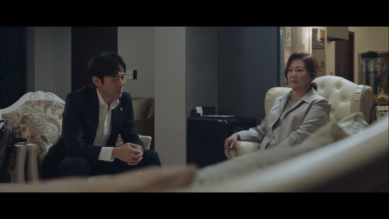 왼쪽이 율제그룹 안병우 회장의 아내 정로사, 오른쪽은 율제그룹의 전무 주종수다. 주종수는 정로사에게 율제병원의 병원장 주전과 뇌센터 센터장을 소개한다. 현재 안병우의 상태는 어려운 상황. 소식을 들은 편 변호사가 정로사에게 잠깐 보자고 한다.