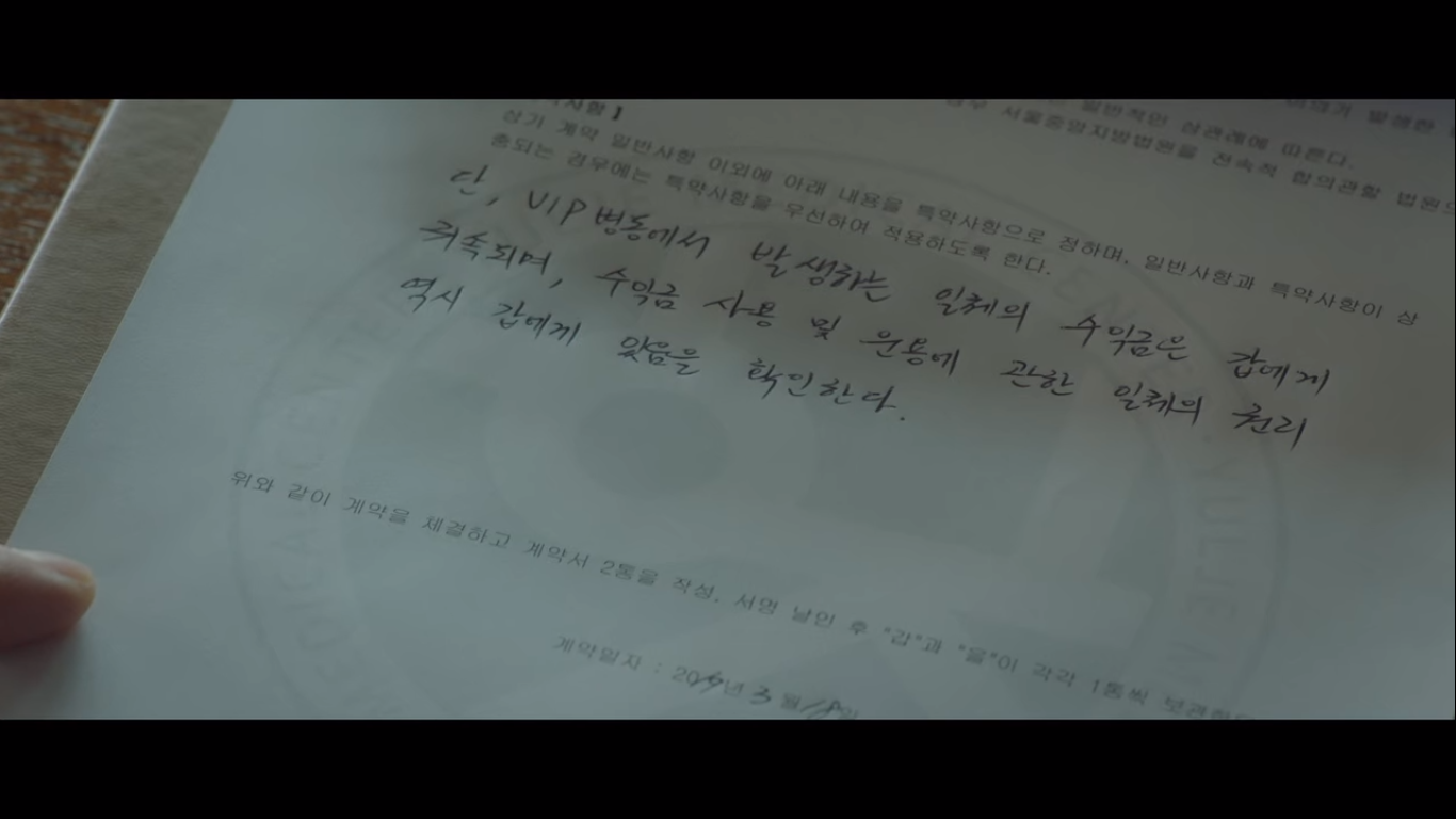 안정원이 형과 정로사를 설득하고 이사장직을 주종수에게 넘기기로 한 것이다. 황회장도 안정원이 설득했다고 한다. "정원이가 찾아가서 부탁했나봐요. 자기 뽑지 말고 주 전무 뽑아 달라고. 전화해서 황 회장 꼬시랬더니. 아이고 내가 자식을 잘못 키웠어. 자식 농사 개판이야, 개판." 안병우네 자식들 참 물색 없기도 하다. 안정원은 주종수에게 이사들 동의서, 안정원과 정로사의 이사직 사임서를 주종수에게 준다. 대신 한 가지 조건을 걸고. 그 조건은 위에서 보는 것처럼 VIP병동에서 발생하는 수익금을 안정원에게 주는 것이다.