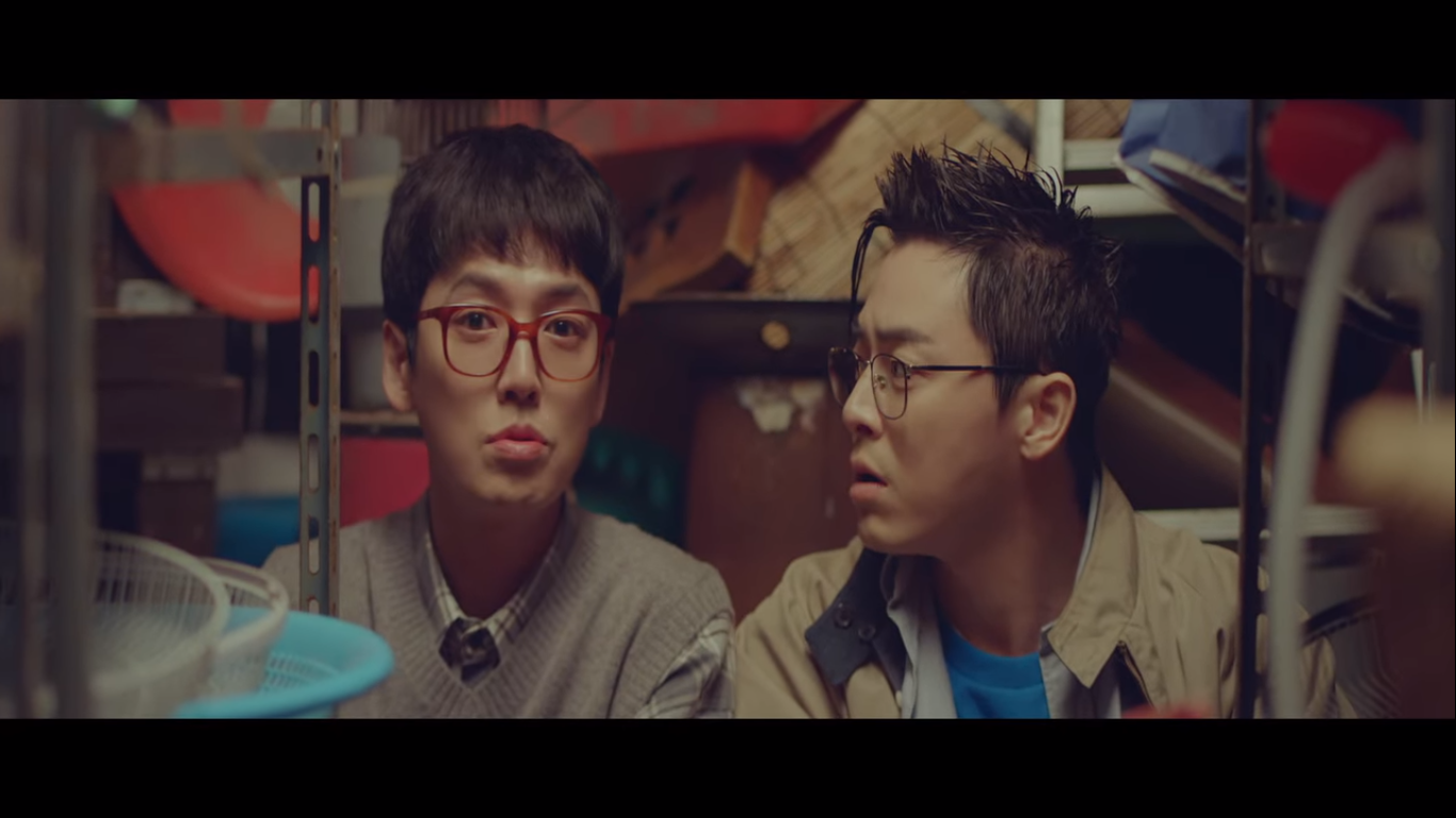 99학번 모꼬지 장기자랑을 피하기 위해 창고로 숨어드는 안정원과 양석형. 근데 이미 김준완과 이익준이 안에 있었다.