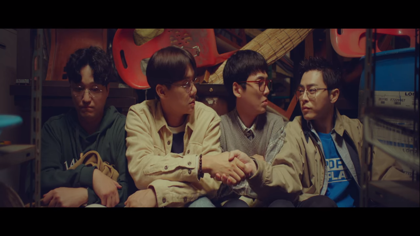 이 노래는 5인방이 처음 만난 서울대 의예과 99학번 모꼬지에서 누군가 장기자랑으로 불렀던 노래다. 모꼬지는 놀이나 잔치로 여러 사람들이 모이는 것을 말하는데 쉽게 말하면 MT같은 거다. 5인방이 99학번 40세로 나와서 배우들의 실제 나이가 궁금해서 검색해봤다. 조정석 80년생 41세, 정경호 83년생 38세, 유연석 84년생 37세, 김대명 80년생 41세, 전미도 82년생 39살이라고 한다. 얼굴 봤을 때는 40세 역할이라는게 말이 되나 싶었는데 조정석이랑 김대명은 불혹이 넘은 나이였다. 진짜 다들 동안이네.