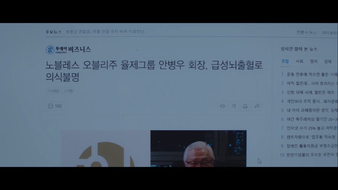 채송화는 인터넷으로 율제그룹 안병우 회장이 급성뇌출혈로 의식불명이란 기사를 보게 된다. 관련 기사를 좀 보면 '최근 안병우 회장은 계열사 대표직 모두를 자녀에게 승계하는 대신 전문경영인에게 넘겨주며 경영 일선에서 물러났다. 현재는 율제재단의 이사장직만을 유지하고 있어 향후 율제병원 운영에 변화가 있을 것으로 예상되고 있다. 안병우 회장이 가장 큰 애착을 가졌던 율제재단인만큼 그 후임에 대한 관심이 높아지는 가운데 율제 재단 측은 이르면 다음주 쯤 안 회장의 후임이 정해질 것으로 예상된다고 전했다. 이러한 발표에 따라 정재계의 이목은 율제재단의 후임자가 누가 될지에 집중되고 있다.'라고 나와있다. 또한 '율제병원은 3남에게로?'라는 기사도 떴다. 세상에 한국에서 재벌이 가족경영을 안하고 전문경영인을 도입하다니 보기 드문 사람일세.