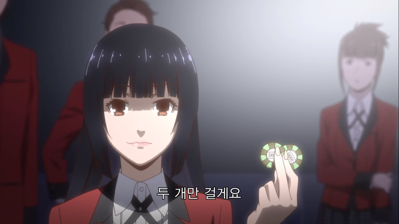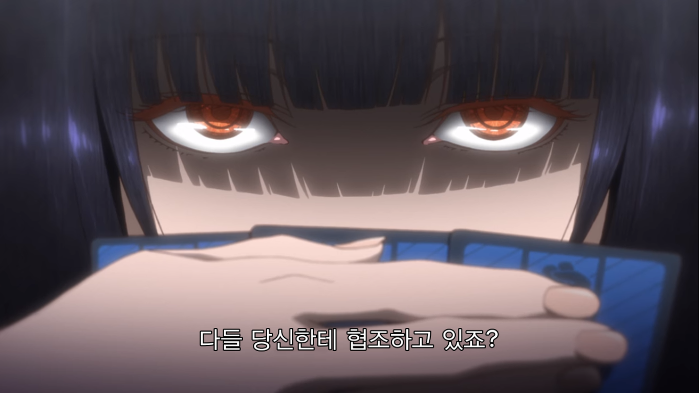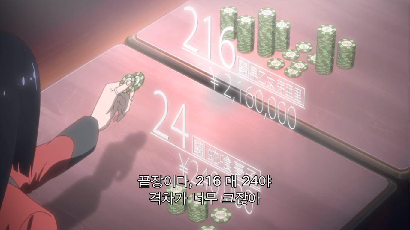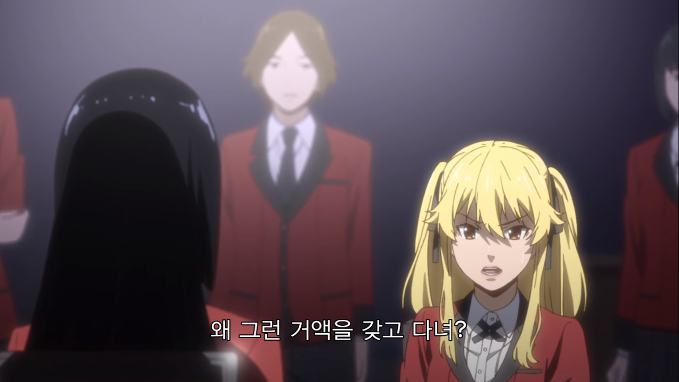 그러자 현금 천만엔을 리필하는 유메코. 천만엔은 한화로 약 1억 천만원이 넘는 돈이다. 메아리는 이런 가위바위보에 천만엔을 거는 유메코에게 정신이 나갔다고 한다. 와 고등학생이 현금 1억이라니ㅋㅋㅋ 그걸 가위바위보 단판에 걸려고 하다니 진짜 미쳤구만.