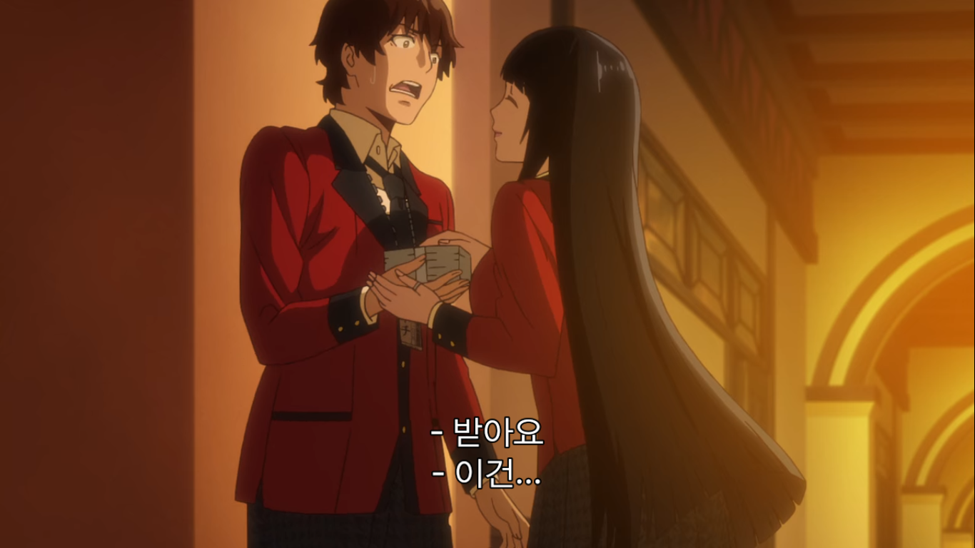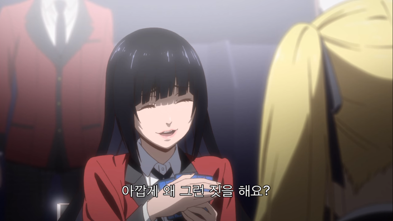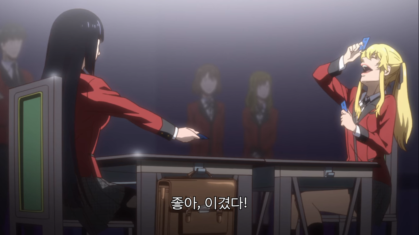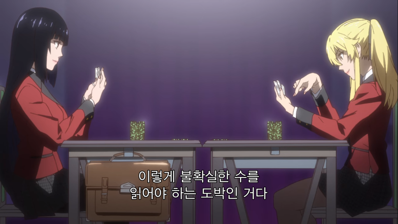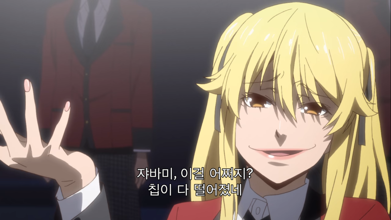 그러자 현금 천만엔을 리필하는 유메코. 천만엔은 한화로 약 1억 천만원이 넘는 돈이다. 메아리는 이런 가위바위보에 천만엔을 거는 유메코에게 정신이 나갔다고 한다. 와 고등학생이 현금 1억이라니ㅋㅋㅋ 그걸 가위바위보 단판에 걸려고 하다니 진짜 미쳤구만.
