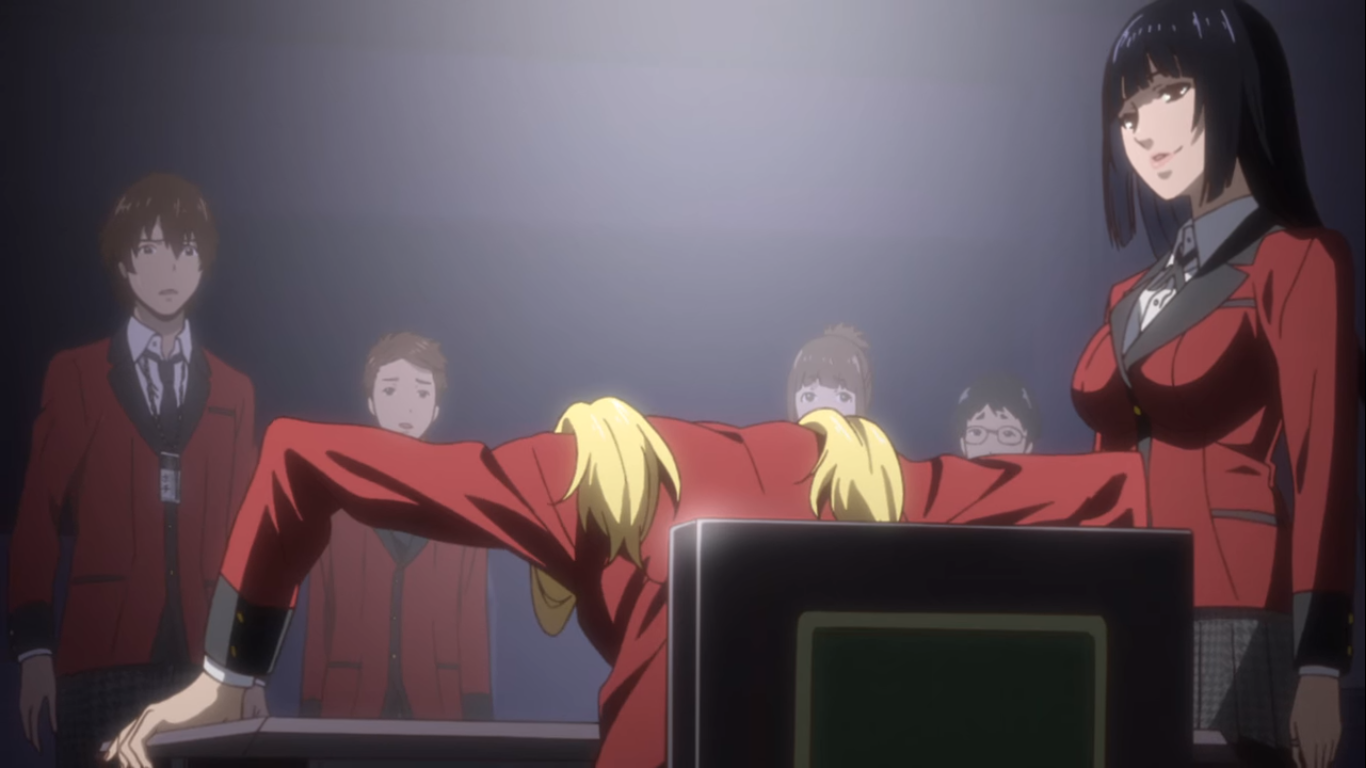 학교 안내를 받던 유메코는 료타 목에 걸린 가축이라는 목걸이를 보고 이게 뭐냐고 묻는다. 료타는 햣카오 사립학교는 옛날부터 도박이 유행이라 수업이 끝나면 여기저기 도박판이 벌어진다고 말한다. 조만간 다른 학생들이 유메코에게 도박을 하자고 할 것을 조심하라고 경고하려는데, 오히려 유메코는 빨리 도박을 해보고 싶어한다.