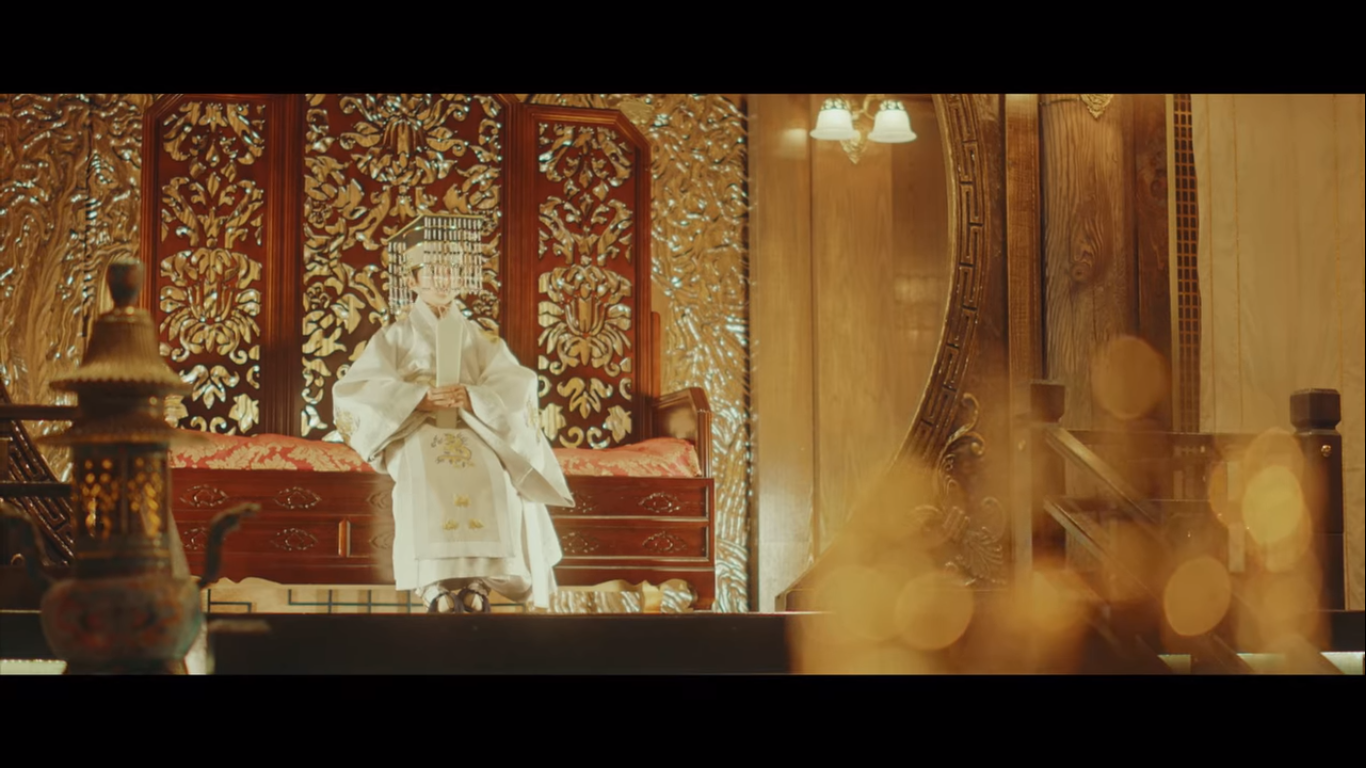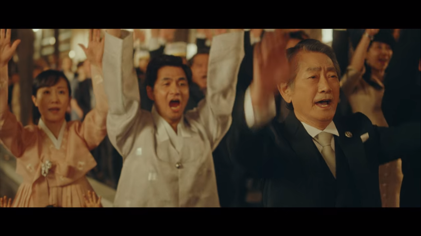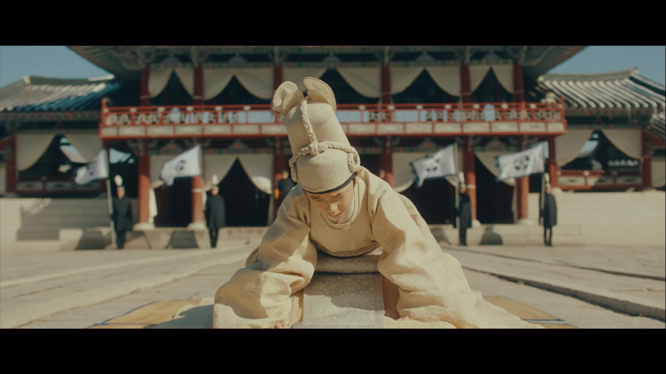 대한제국에서 황제 즉위식을 하는 이곤. 많은 사람들이 만세를 외친다.