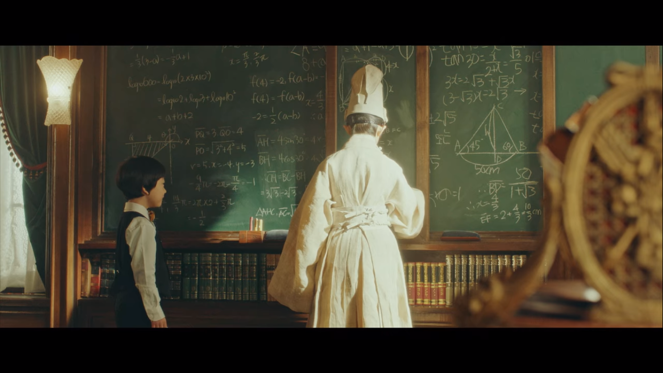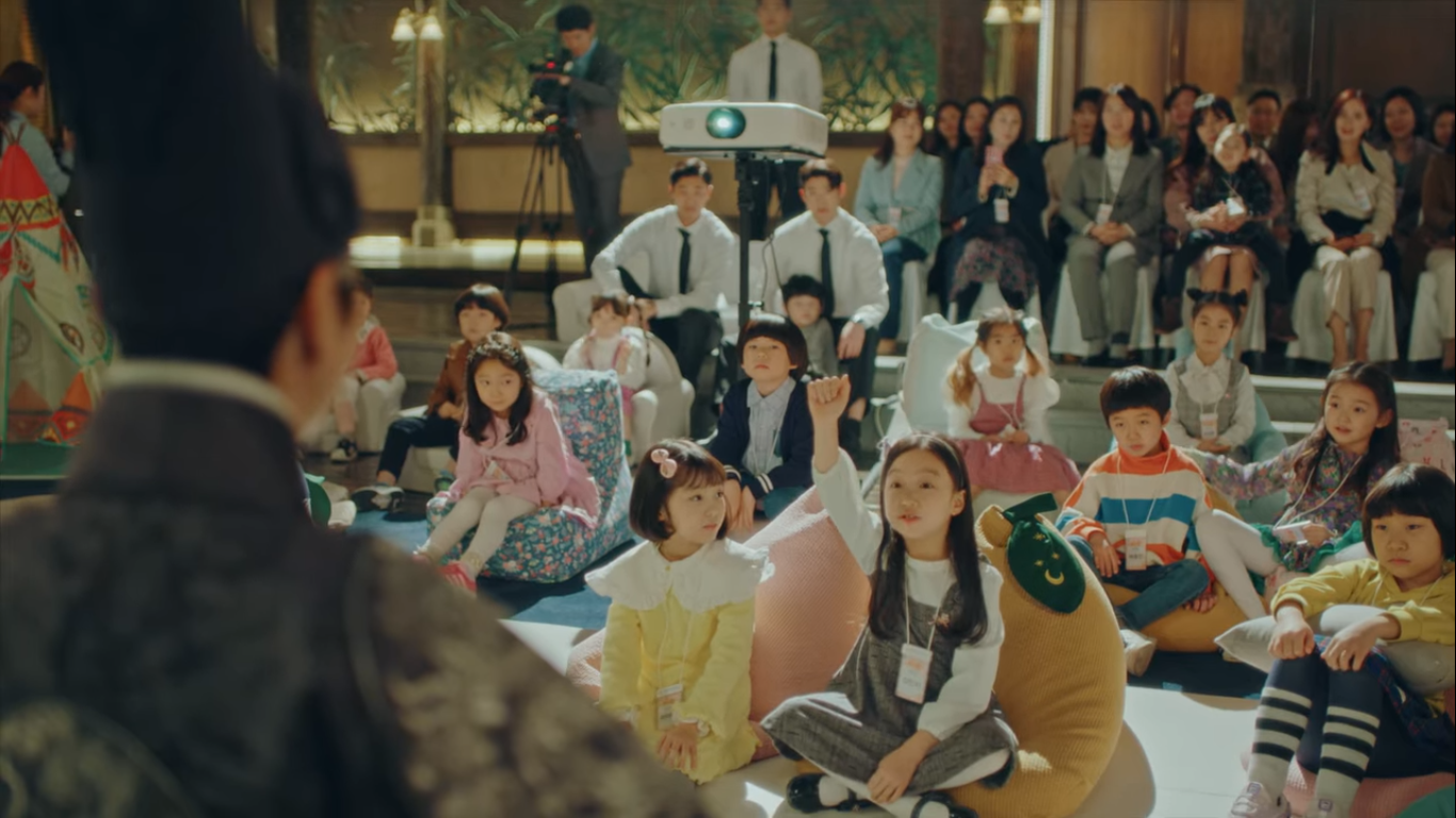공부하고 있는 이곤에게 다가오는 조영. 칠판 보니 8살짜리가 벌써 함수를 공부하고 있다. 귀염뽀짝하게 티격태격하는 이곤과 조영. 참고로 조영의 나이는 4살이다.
