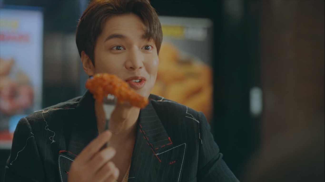 그러고서 비장하게 치킨을 먹는데 양념치킨 맛에 푹 빠진 이곤. 대한제국에는 이렇게 양념범벅 된 치킨이 없댄다. 아니 근데 너 다른 세계에서 왔는데 누가 여기서 널 독살해. 진짜 백만분의 하나라도 누가 널 독살한다 쳐도 이미 정태을이 치킨 먹었는데 왤케 분위기를 잡니. 오그라들어 죽겠네.