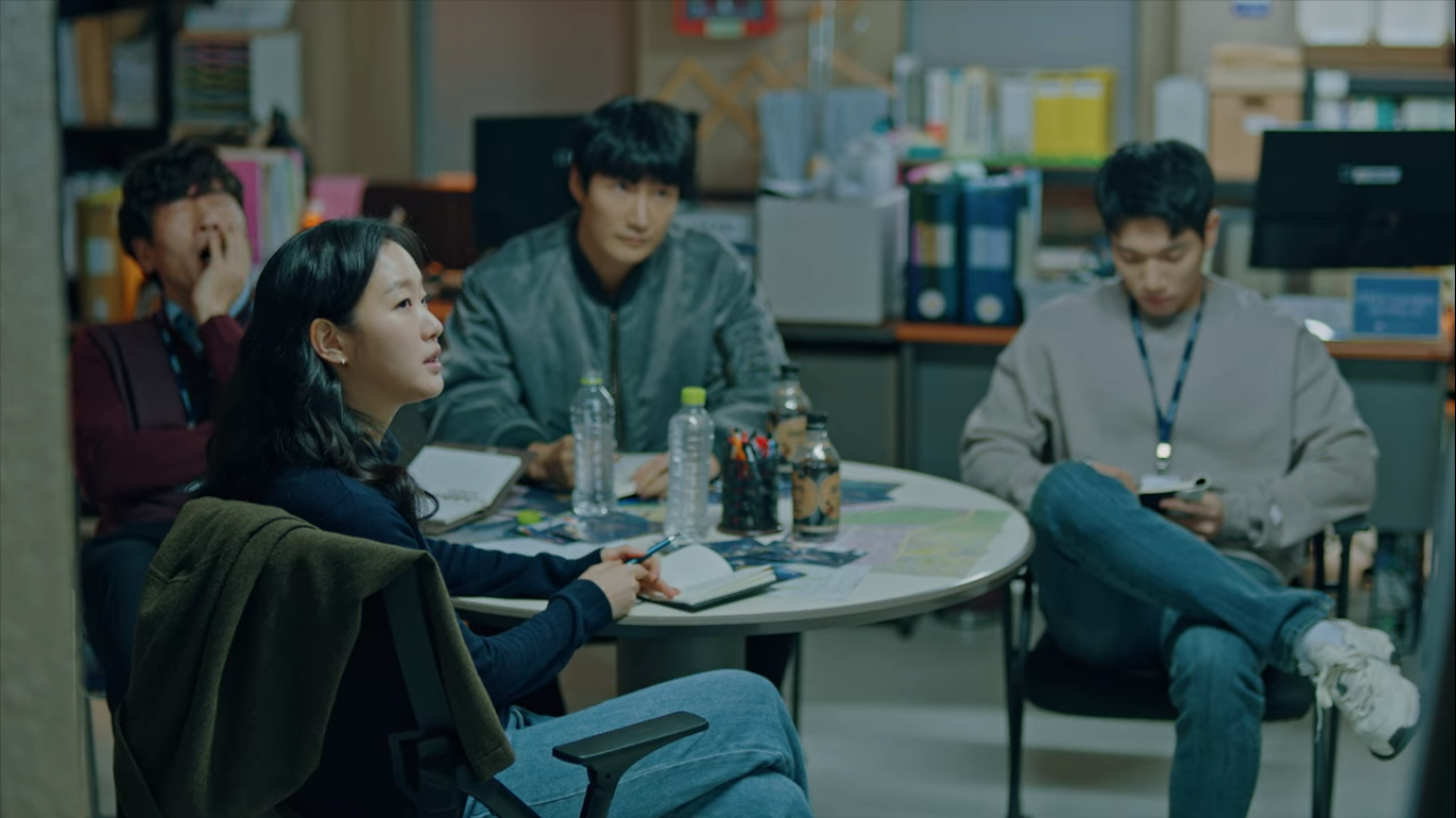 이곤은 결국 종이컵으로 물만 마시는 것 같은데 음료를 산 강신재가 정태을에게 전화한다. 형사팀 약속이 있는 모양. 강신재는 이곤이 얼굴을 보고 조은섭, 경란, 박문식이 말한 정신나가고 잘생긴 신원불장자가 이곤이라는 것을 눈치챈다.