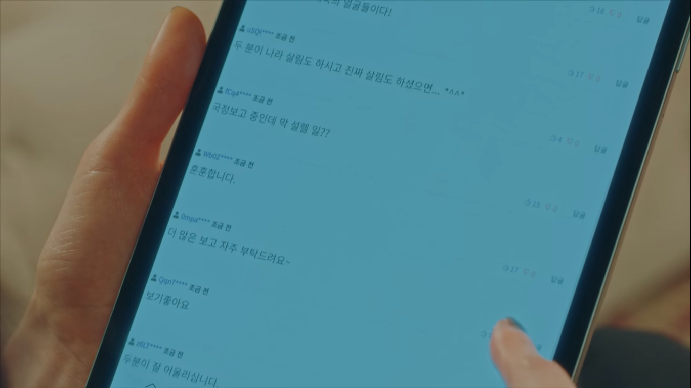 이종인의 경호 단계가 오른 것을 보고 이곤이 무단외출 한 것을 알게 된 구서령과 김비서. 구서령은 온 국민에게 이곤의 여자는 자신이라고 알게 하는 중인데 어디에 다른 여자가 있을까 걱정이 된다. 댓글 사진은 승마장에서 이곤과 구서령이 함께 한 사진 밑에 달린 것이다.