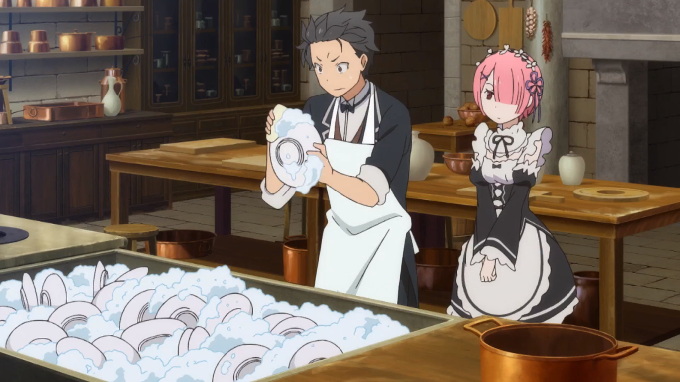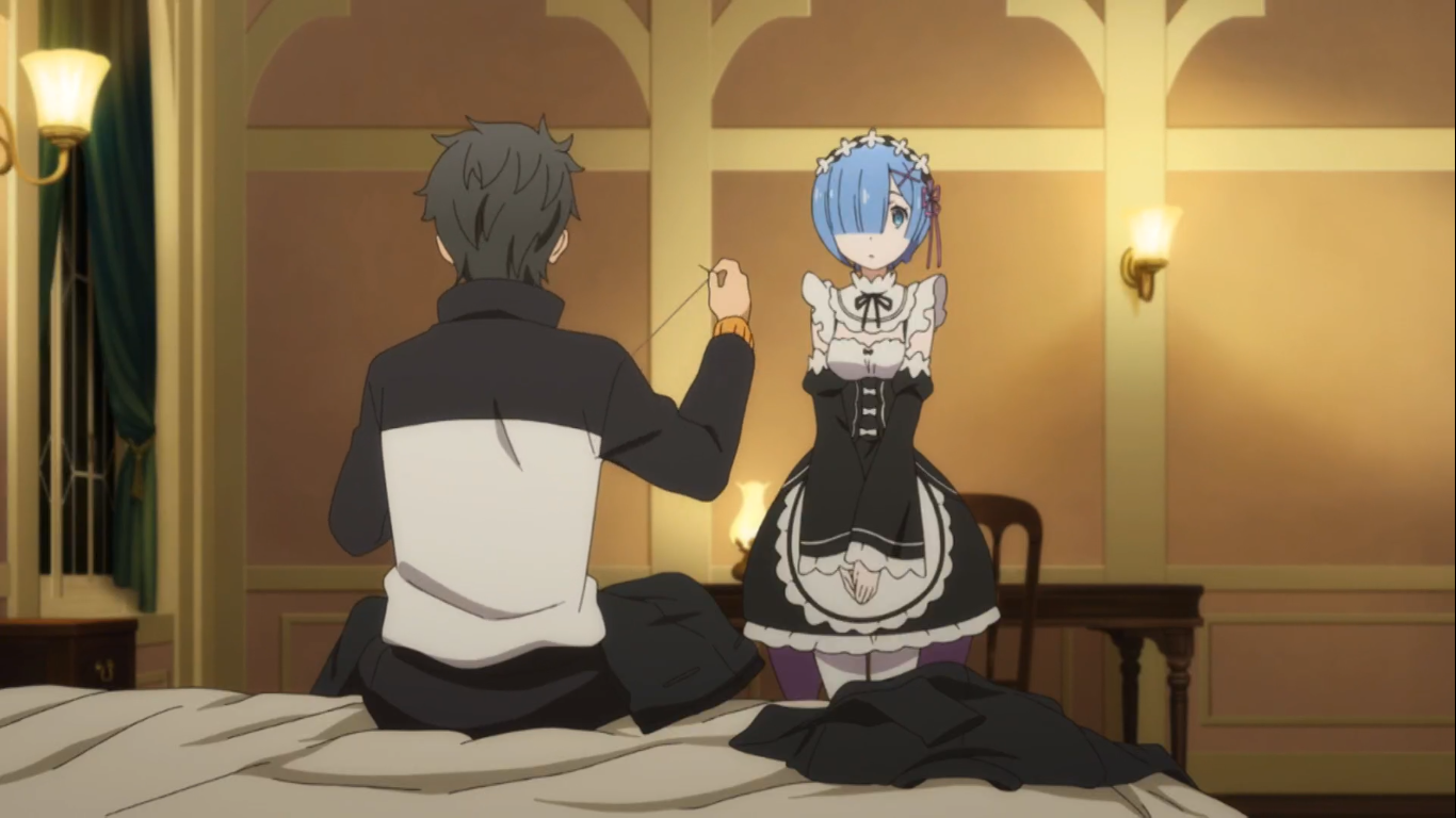 저택 안내 후 람을 도와 집안일을 하자 하루가 훌쩍 지나가 저녁이 된다. 렘은 수선을 마친 스바루의 집사복을 전달하고, 바지는 스바루가 직접 수선한다. 스바루의 재봉 스킬을 보고 만점이라고 칭찬하는 렘.