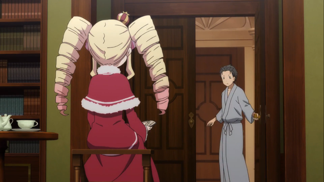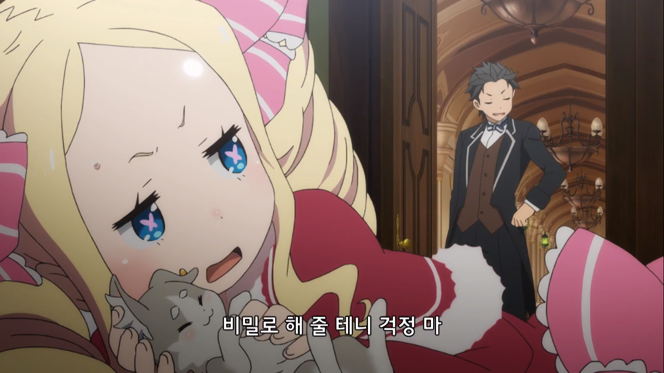 맞는 옷이 없어서 새로 치수를 잰 후, 람과 함께 저택을 구경하는 스바루. 그런데 그 와중에 팩의 털에 뿍 빠진 베티를 본다. 다시 문을 열자 베티는 없고 화장실이 나타나는데 이건 베티의 징검문이라고 한다.