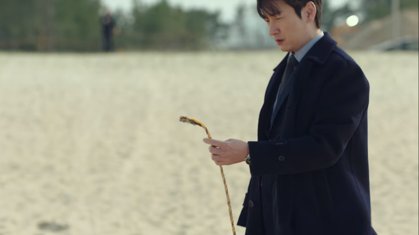 황시목은 해안가에서 버려진 통제선을 발견하는데, 그 통제선이 라이터로 지져서 끊어졌다는 것을 알아낸다.