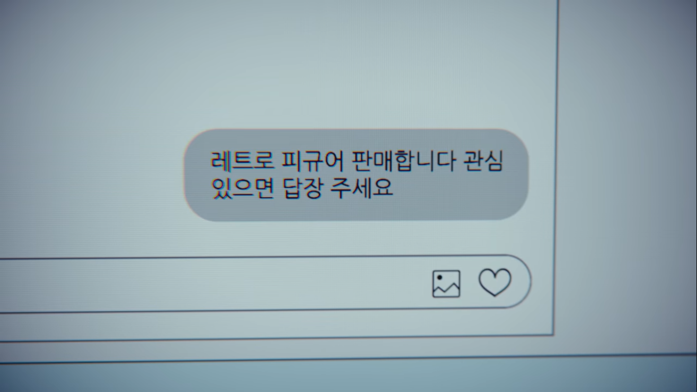 인스타 남자에게 레트로 피규어를 판매하겠다며 말을 건 한여진. 바로 '모델명하고 사진이요'라는 답장이 왔는데 집에 가서 사진 찍어보낸다니까 읽씹한다.