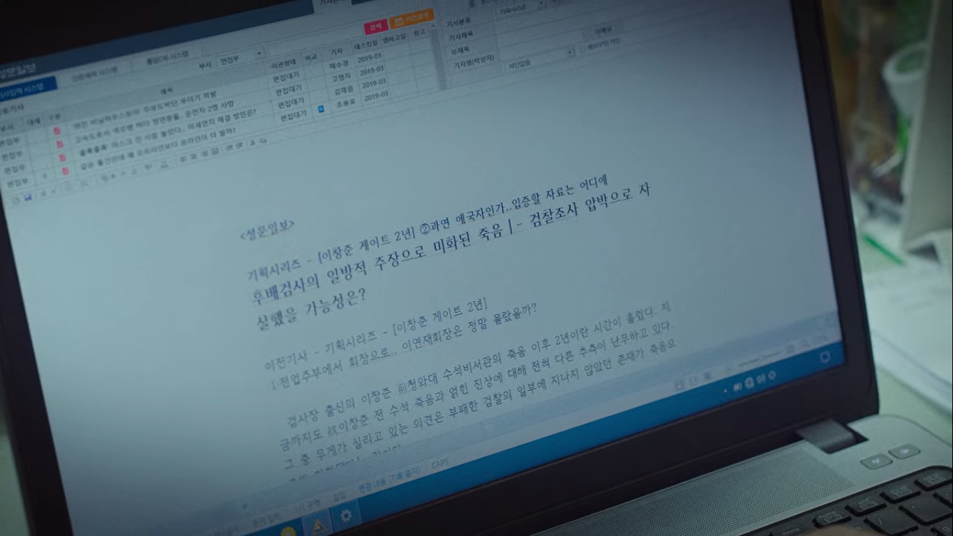 한여진은 검찰처럼 위신을 깎아내리는 게 아니라 경찰의 잘한 점을 부각시키자고 어필하지만 최빛에게 통하지 않는다. 사실 부정적인 기사들이 더 임팩트 있긴 하지.