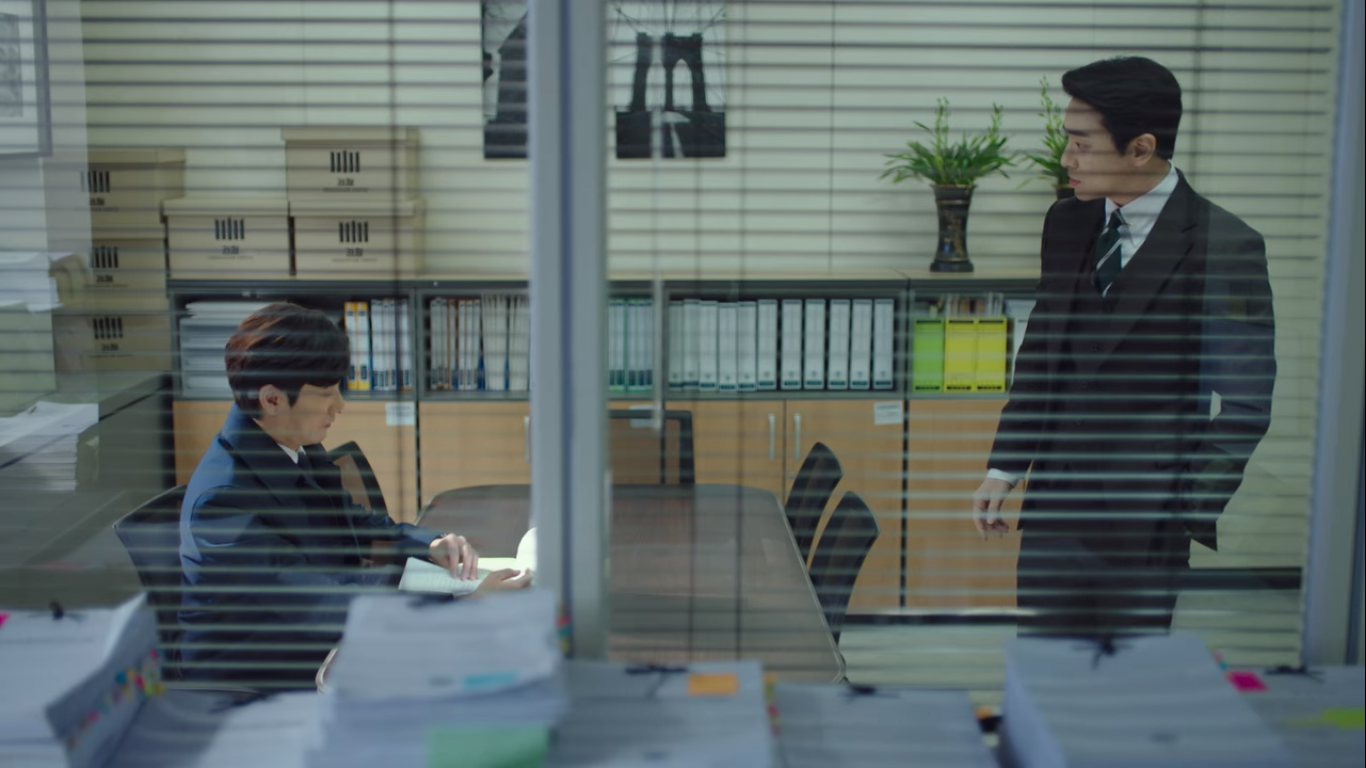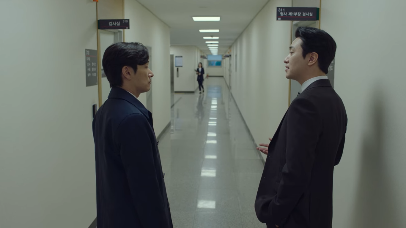 앞의 두번은 영은수와 이창준을 말하는 듯. 그런데 복도에서 어떤 여자가 지나가다가 서동재에게 인사를 하는데, 이 사람이 정민하인 것 같다. 정민하는 서동재 방에서 수습 시절을 보낸 새내기 검사인데, 알고보니 황시목의 학교 후배라고 한다. 같은 지검에 있는 서동재때문에 뒤돌아 본 것 같지는 않고, 학교 선배인 황시목때문에 잠깐 뒤돌아 본 거 아니였을까?