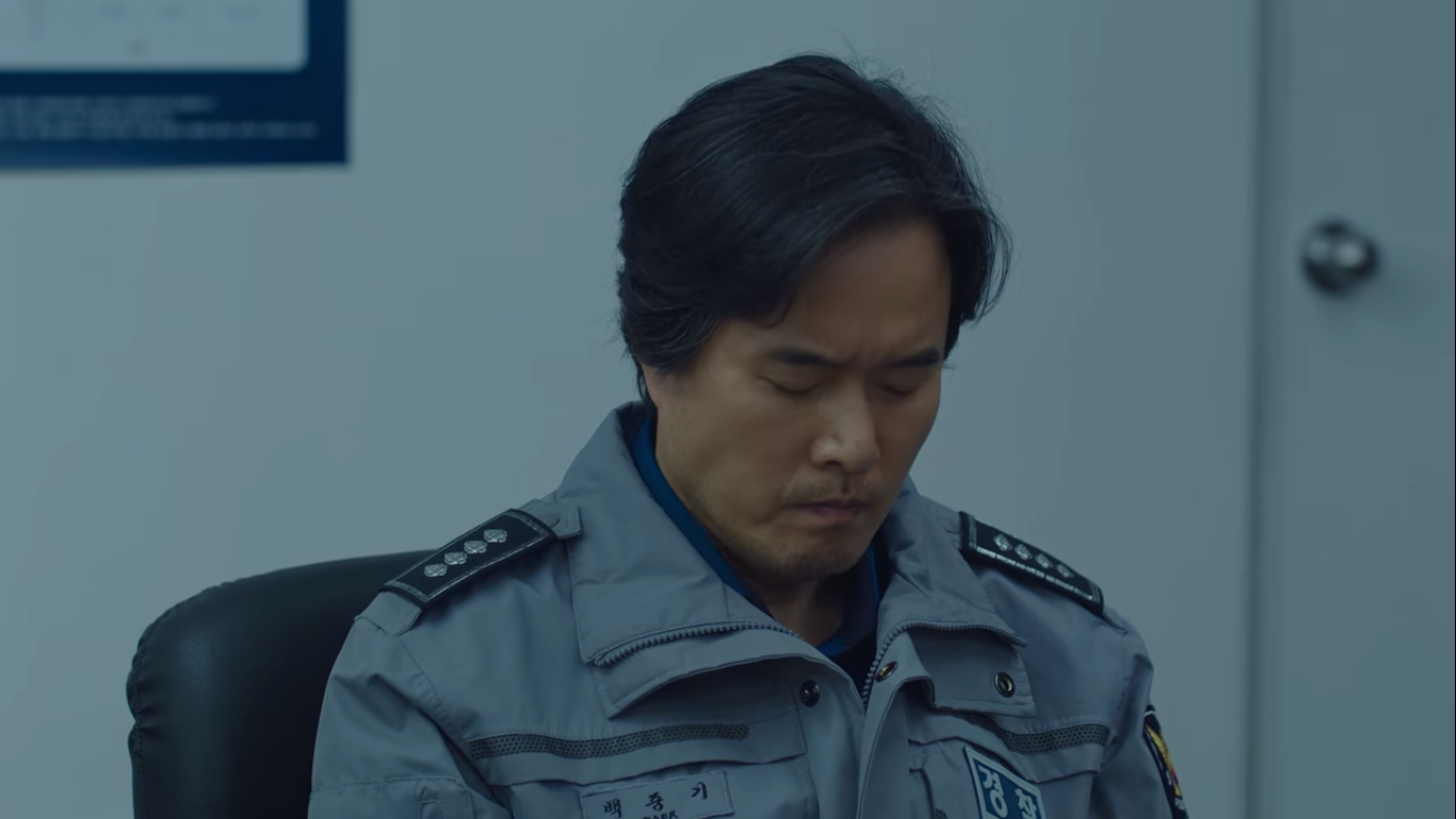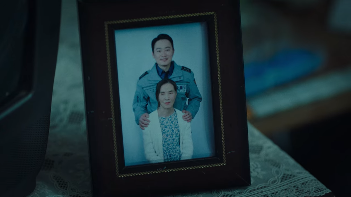 뒤늦게 도착한 박순창과 백중기. 백중기는 박순창에게 테이저건을 돌려주고 빠루로 문 옆에 있던 못을 뺀다. 사진을 보니 여관에 누워있던 할머니는 이대성의 엄마였다. 자신이 늦은 이유에 대해 전후 사정을 설명하는 박순창.