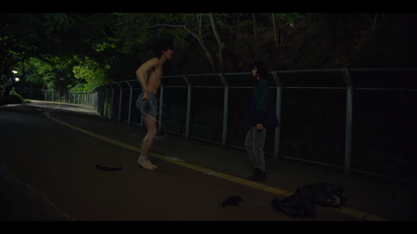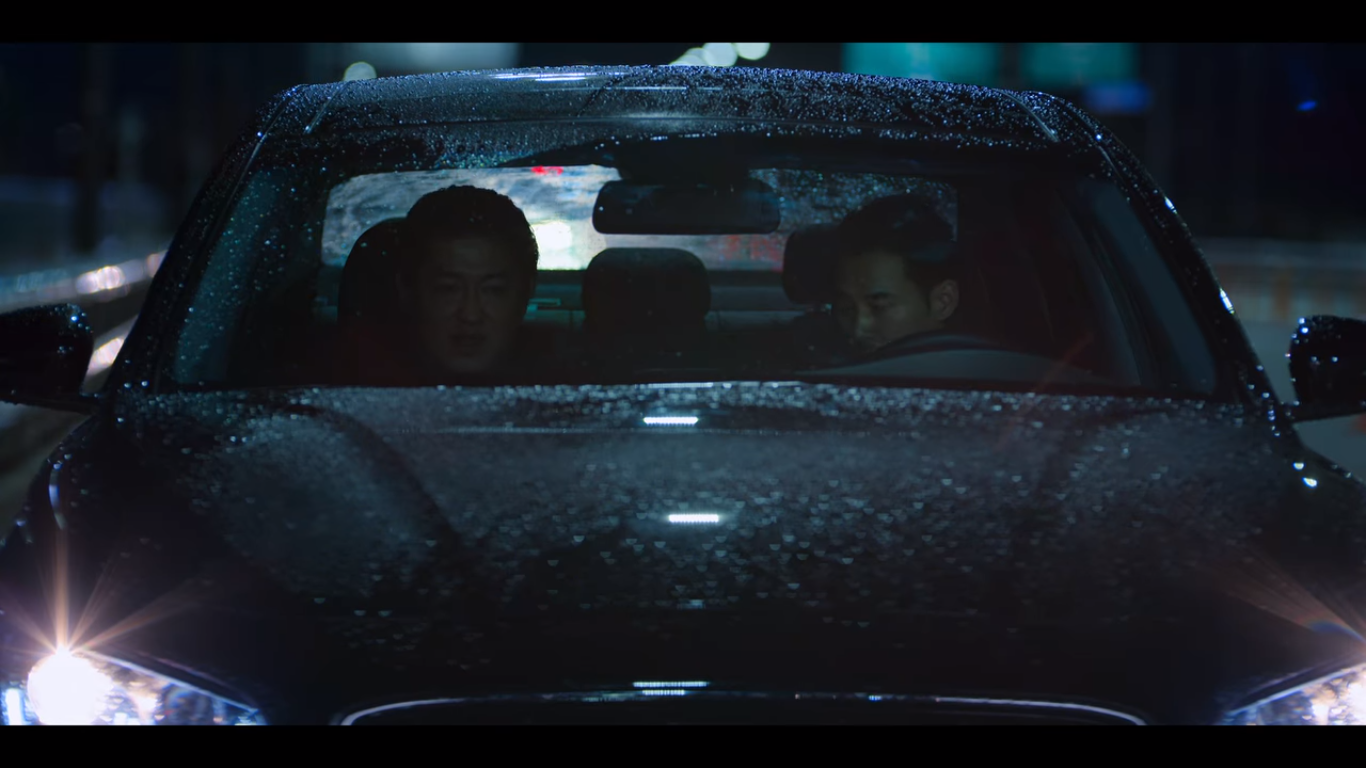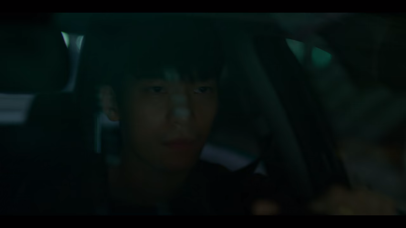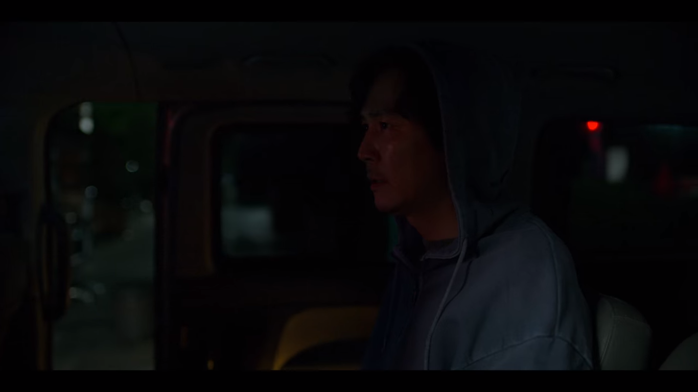 기훈은 다시 오징어게임을 참여하려고 차에 타고, 준호가 그 뒤를 미행한다.
