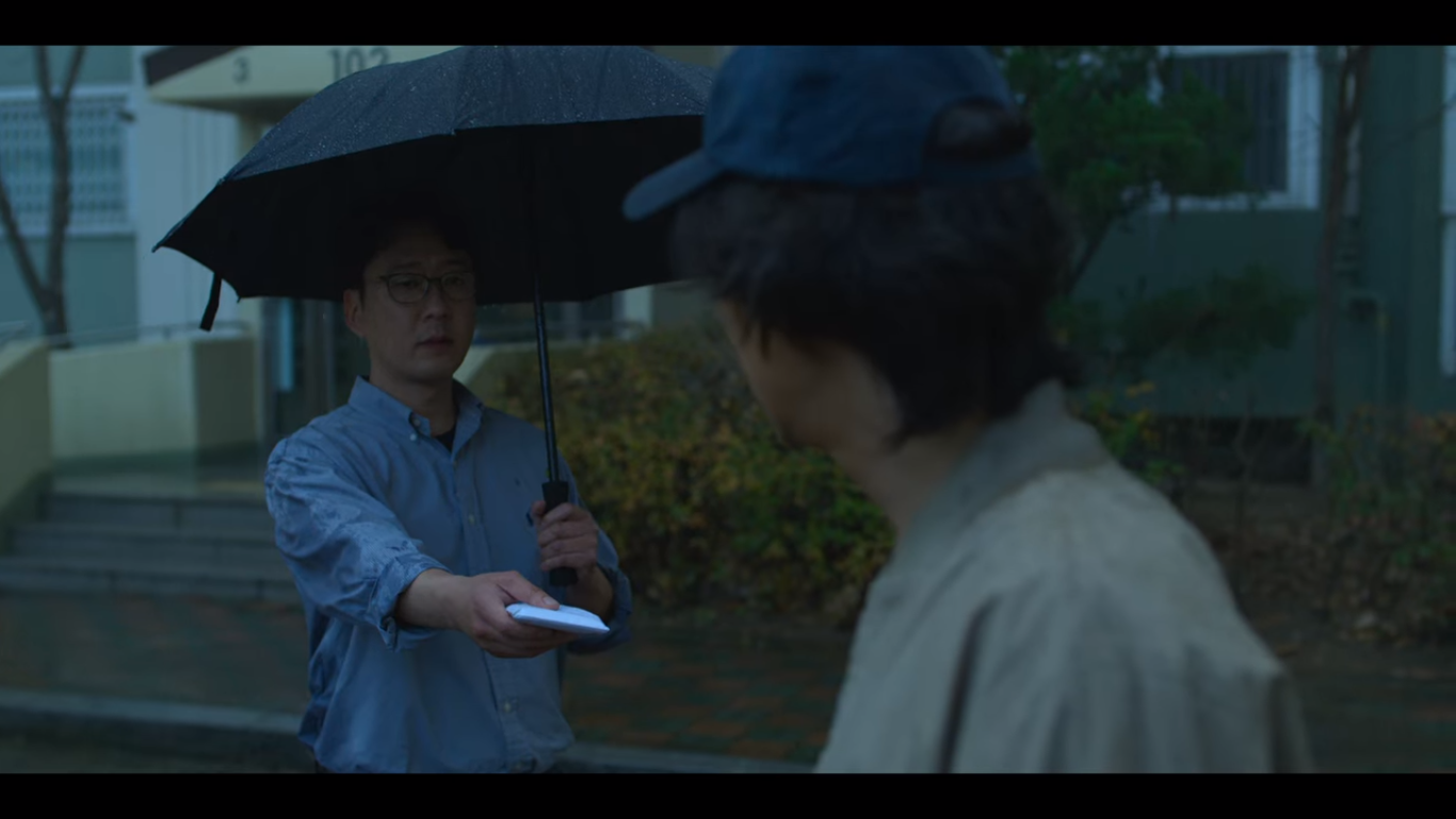 기훈은 엄마의 병원비를 마련하기 위해 전처를 찾아간다. 전처는 당연히 줄 돈이 없다고 하고, 전처의 현남편이 돈을 주는 대신 다신 찾아오지 말라고 한다. 그 말에 화가 난 기훈은 계부를 때리고, 이 모습을 가영이 지켜본다.