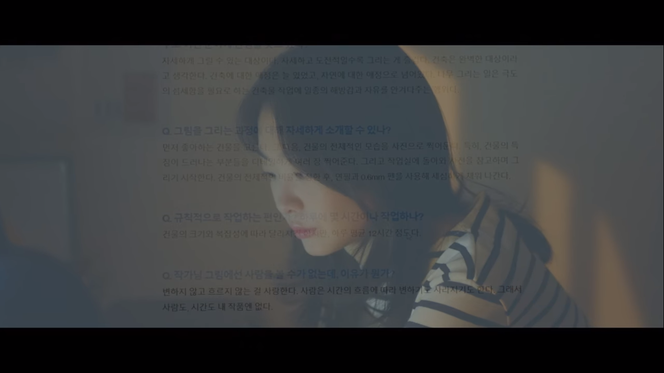 집으로 돌아온 연수는 고오작가 인터뷰를 보며 그를 조사한다. 작가님 그림에선 사람을 볼 수 없는 이유에 대한 질문에 오고는 '변하지 않고 흐르지 않는 걸 사랑한다. 사람은 시간의 흐름에 따라 변하기도 사라지기도 한다. 그래서 사람도, 시간도 내 작품엔 없다.'라고 답한다. 웅이의 가치관이 드러나는 부분이다. 그나저나 연수는 할머니와 둘이 사나보다. 아마 10년 전에도 그런 듯. 부모님이 왜 안계신지는 아직 알 수가 없다.