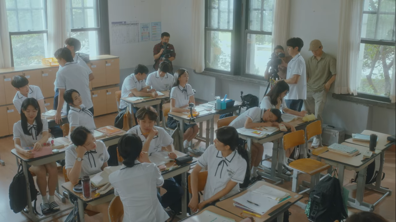 동일이 지웅에게 다큐를 맡기려는 이유가 있었다. 그건 바로 지웅이 웅이와 연수의 고등학교 동창이기 때문이다. 왼쪽 사진에 작게 뒤돌아 본 남자애가 지웅이다. 현재 웅이와 연수가 연락을 하고 지내는지, 얼마나 바뀌었는지 알 수 있는 사람이 바로 지웅인 것이다.